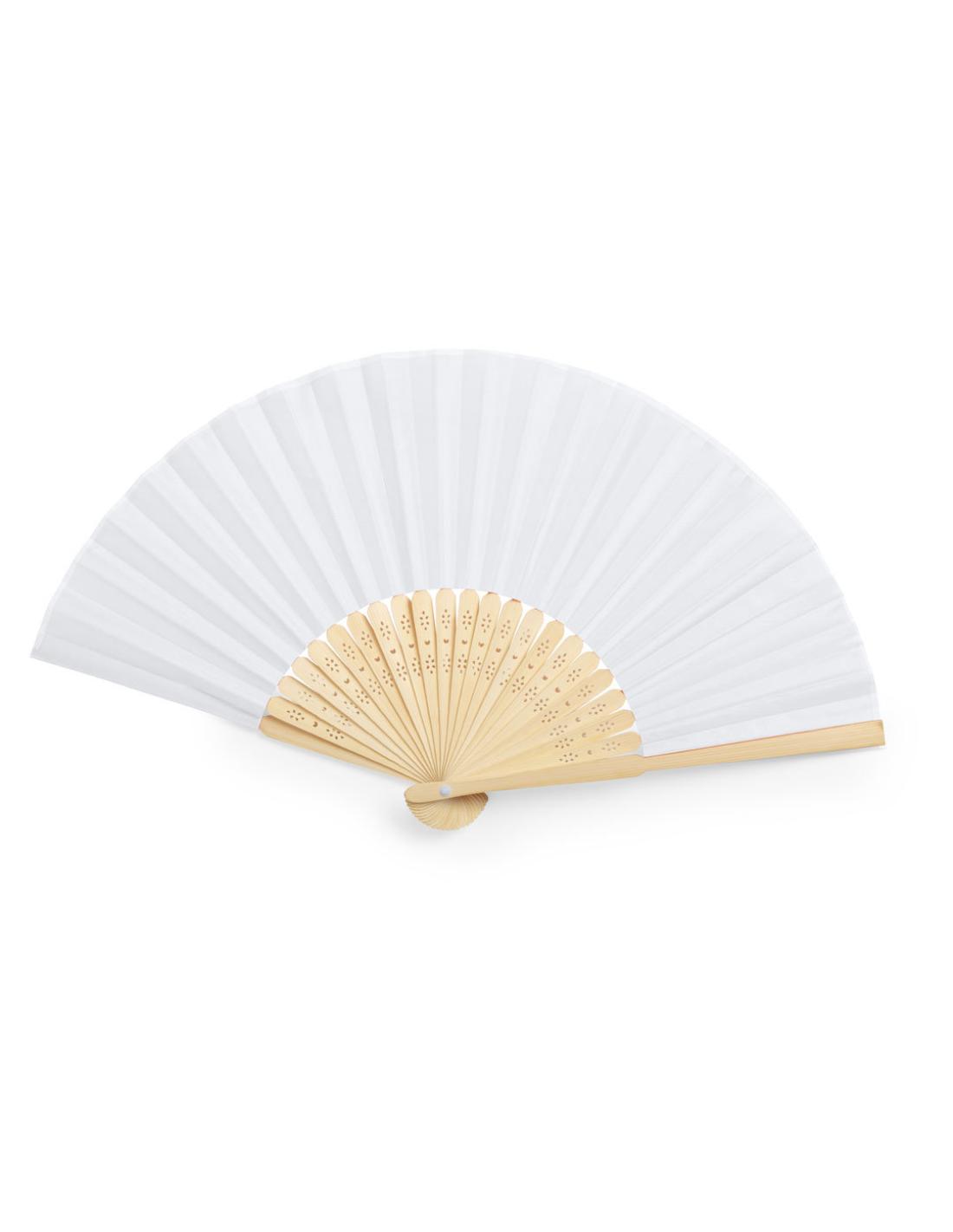 Abanico de línea nature con tela en resistente poliéster 190T. Varillas fabricadas en flexible bambú. Disponible en variada gama de colores.
