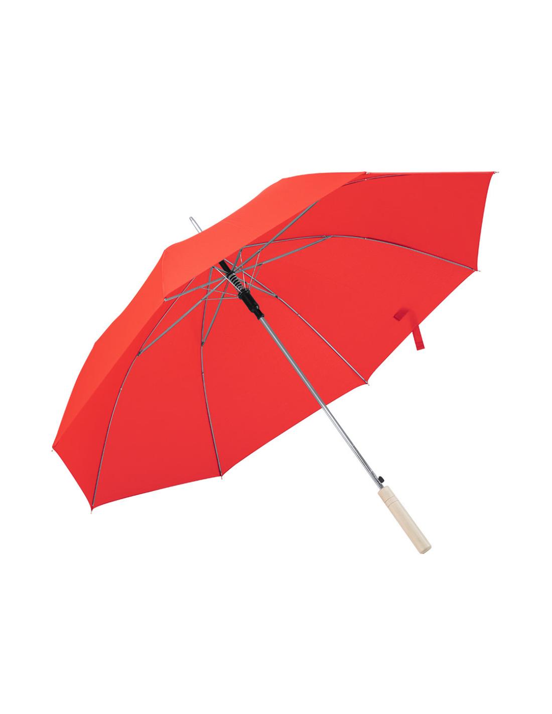 Paraguas de 8 paneles en nylon 190T, de 105 cm de diámetro. Apertura automática, con varillas metálicas en color cromado y mango de madera. Disponible en variada gama de colores planos o combinaciones con blanco.