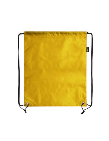 Mochila de cuerdas en suave poliéster RPET. Con cuerdas autocierre, esquinas reforzadas y resistentes argollas metálicas. Distintivo RPET en etiqueta lateral y disponible en variada gama de colores (color blanco especialmente fabricado para impresión en sublimación).Elaborado a partir de plástico reciclado, para así fomentar la reutilización de residuos plásticos y ayudar a la sostenibilidad del planeta.