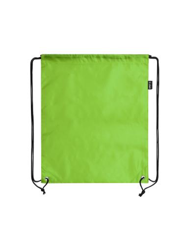 Mochila de cuerdas en suave poliéster RPET. Con cuerdas autocierre, esquinas reforzadas y resistentes argollas metálicas. Distintivo RPET en etiqueta lateral y disponible en variada gama de colores (color blanco especialmente fabricado para impresión en sublimación).Elaborado a partir de plástico reciclado, para así fomentar la reutilización de residuos plásticos y ayudar a la sostenibilidad del planeta.