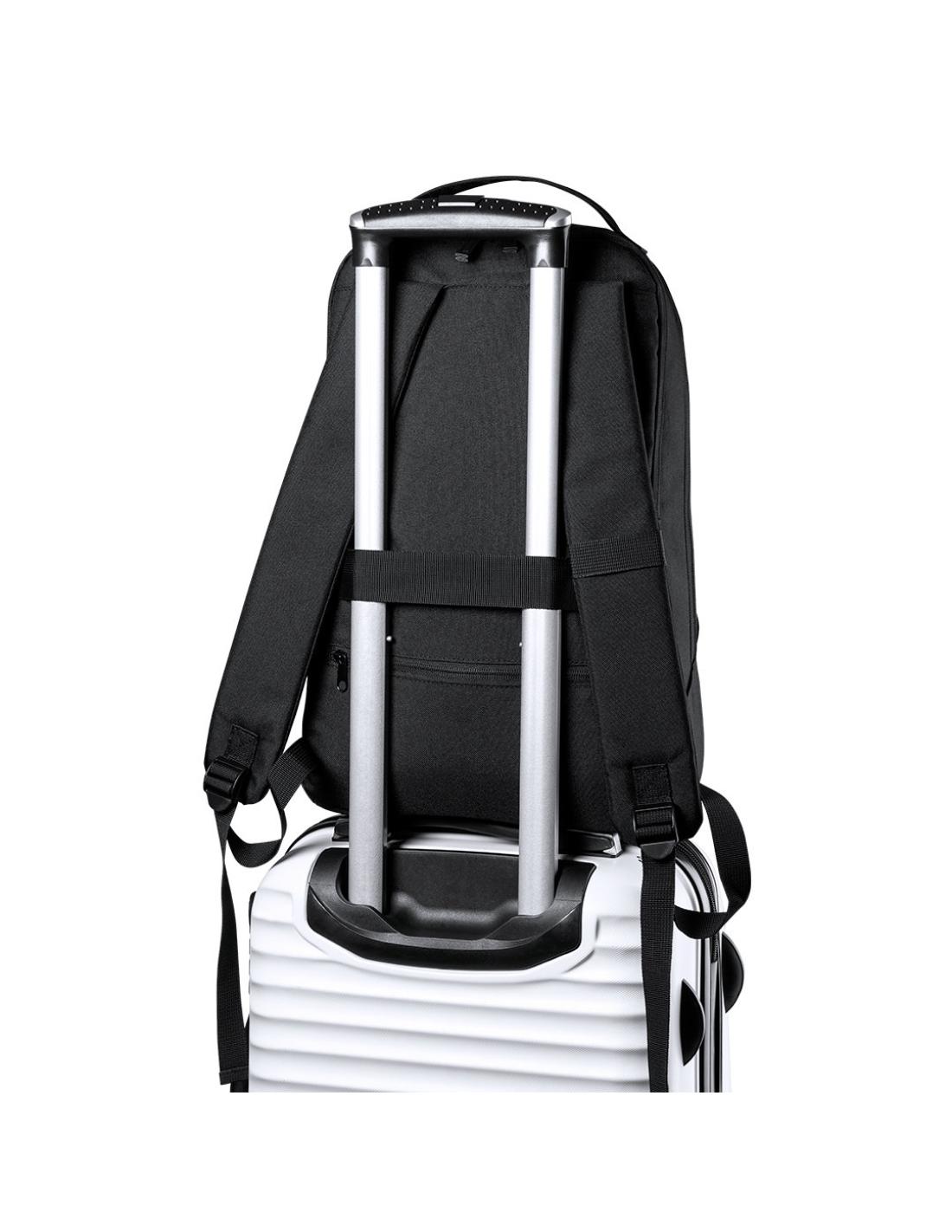 Mochila fabricada en resistente poliéster 600D RPET, elaborado a partir de plástico reciclado, para así fomentar la reutilización de residuos plásticos y ayudar a la sostenibilidad del planeta. Compartimento principal con cierre de cremallera de doble tirador y bolsillo en frontal. Interior con bolsillos acolchados para tablet de hasta 10 pulgadas y ordenador portátil de hasta 15 pulgadas. Accesorio de ajuste en trolley, con bolsillo antirrobo en parte trasera. Espalda y cintas de hombros acolchadas y ajustables, con distintivo RPET en etiqueta.