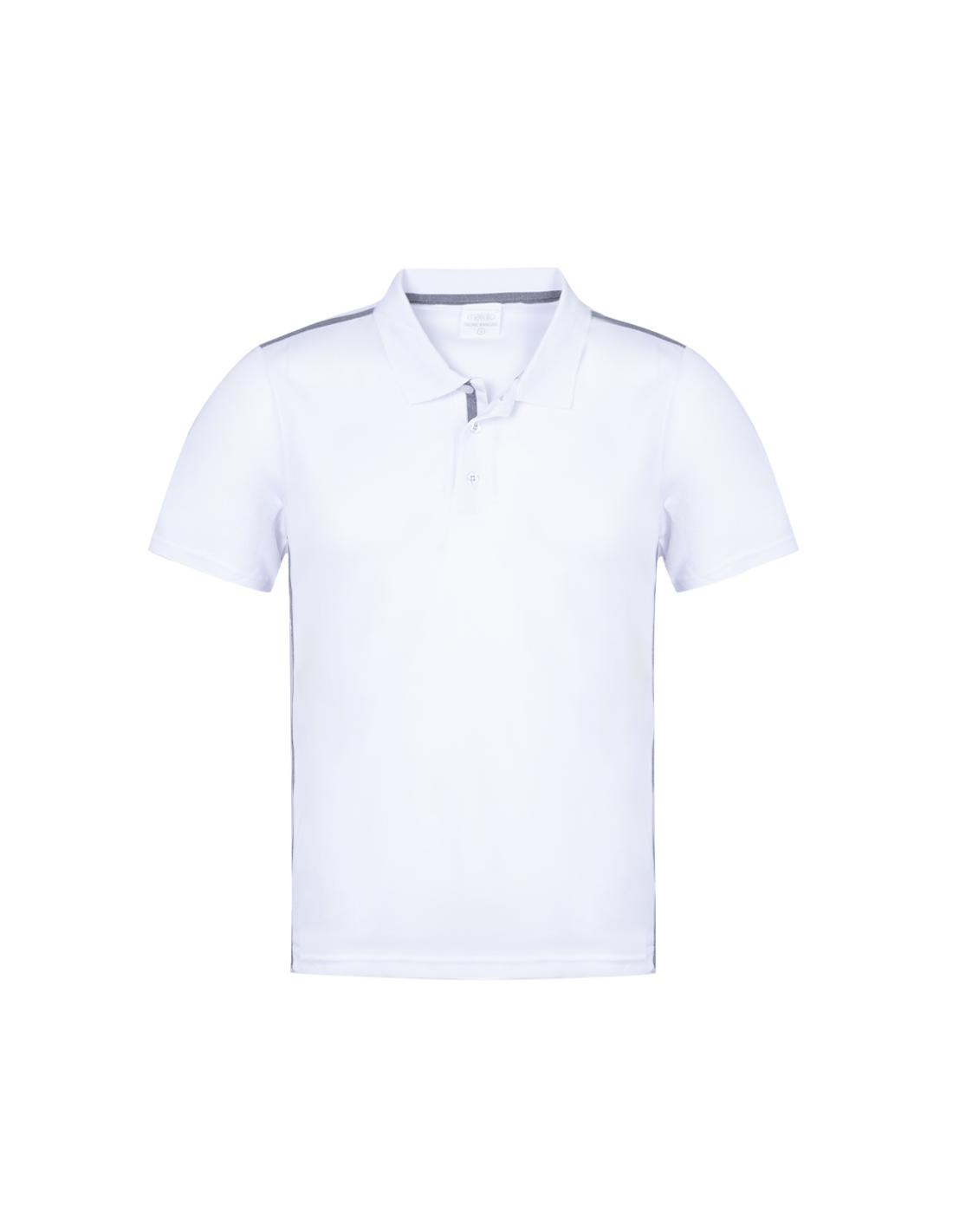 Polo técnico para adulto en poliéster transpirable de 180g/m2. De elegante diseño bicolor, en color blanco con contraste de detalles en gris. Disponible en tallas S, M, L, XL, XXL. Color blanco especialmente fabricado para marcaje en sublimación.