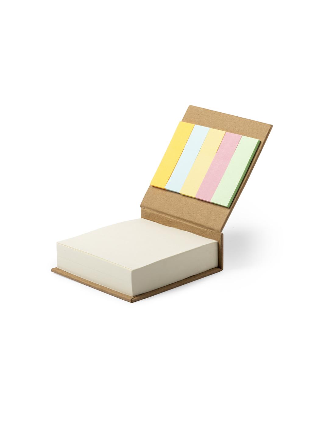 Portanotas con tapas rígidas en resistente cartón reciclado. Con 200 hojas lisas y 125 mini notas adhesivas.