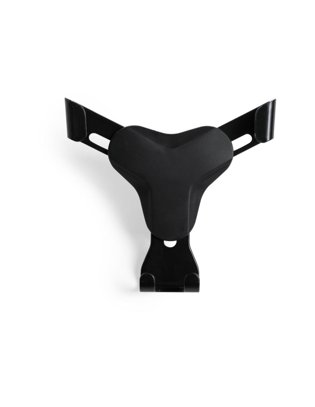 Ingenioso soporte para smartphone de diseño minimalista y especialmente diseñado para smartphones tamaño XXL. Con sistema de fijación universal que se activa por el propio peso del teléfono, ajustando las pinzas de agarre una vez que se sitúa el dispositivo en el soporte. Para rejilla de ventilación del automóvil y con frontal especialmente diseñado para marcaje en tampografía.