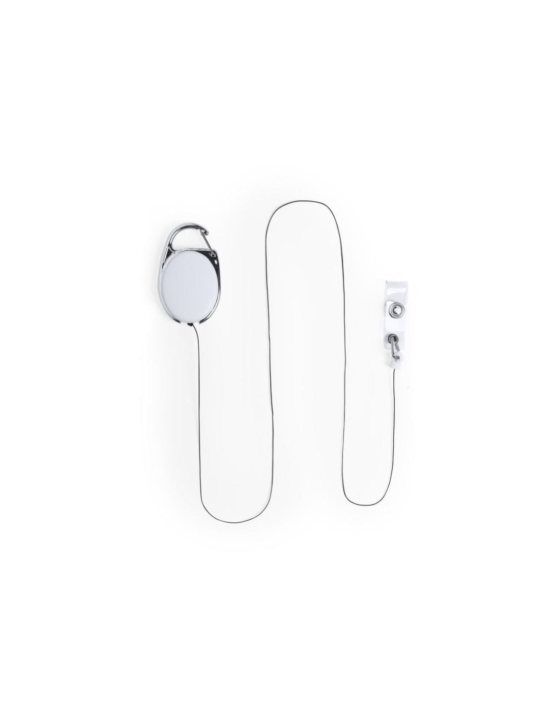 Porta acreditaciones extensible de sobrio diseño, con accesorio de cierre de botón para colgar la acreditación y con mecanismo extensible de hasta 75 cm. Con mosquetón de enganche metálico y amplia superficie de marcaje