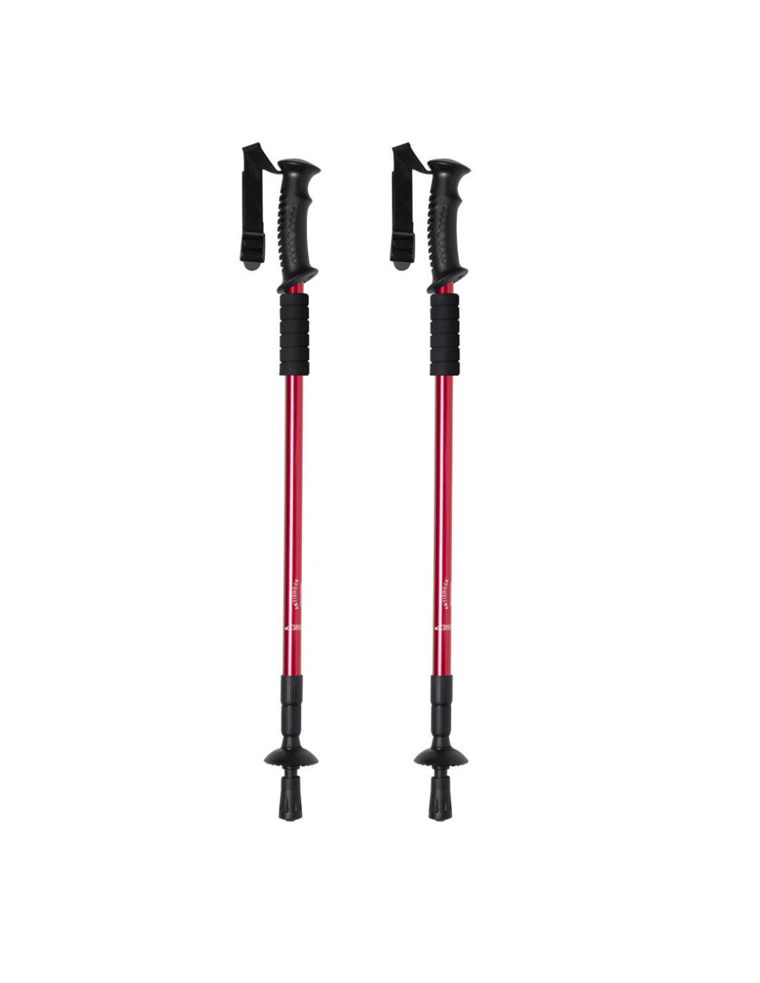 Set de bastones deportivos plegables en resistente aluminio, con mecanismo de amortiguación y accesorio en suave espuma para descansar las manos. Con cómoda asa ergonómica, cinta de seguridad ajustable y accesorio para nieve. Superficie de contacto con el suelo reforzada. Presentado en bolsa de transporte con cinta para hombro. Bastones disponibles en 3 colores.