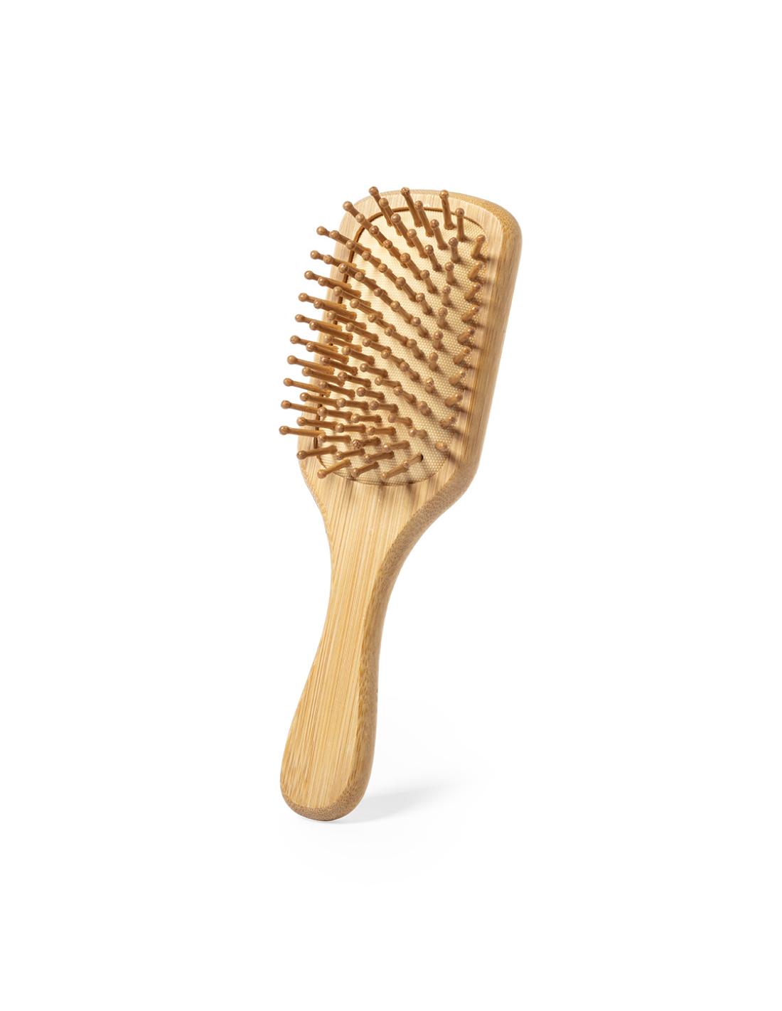 Cepillo de línea nature en bambú pulido, para así fomentar la utilización de materias primas naturales y reducir las emisiones contaminantes. Con amplia superficie de marcaje en mango y presentado en atractiva caja de diseño eco.