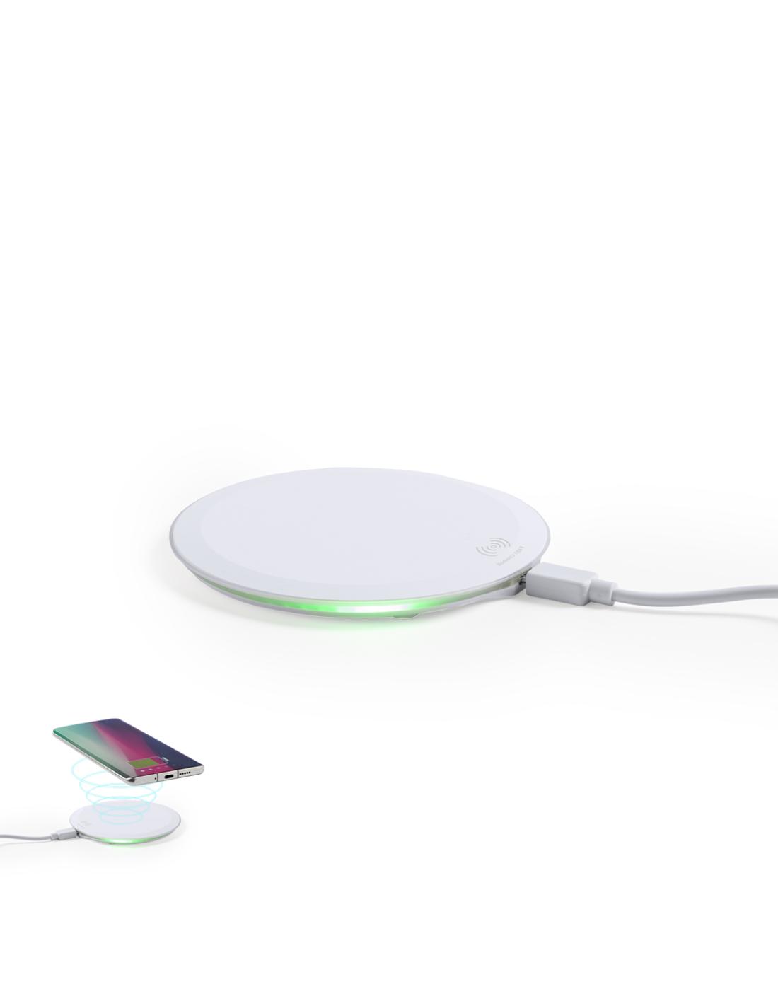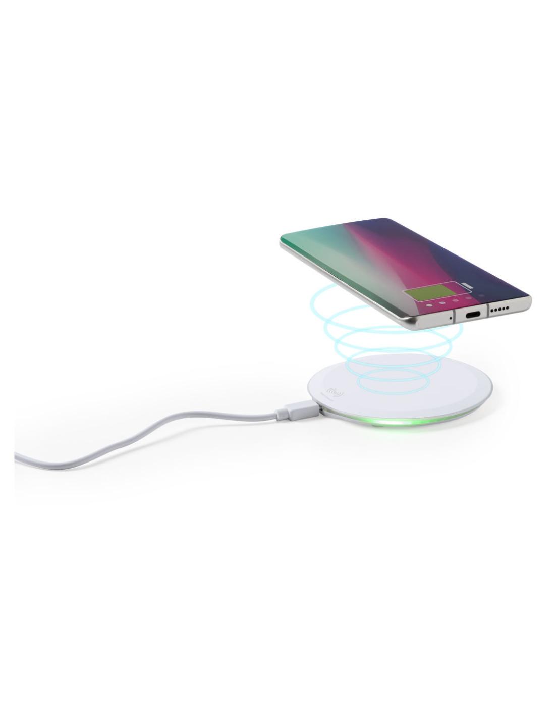 Cargador inalámbrico circular, con función carga rápida de 10W. Base antideslizante e indicador LED de estado de carga. Cable micro USB incluido y compatible con smartphones con tecnología de carga inalámbrica. Presentado en atractiva caja de diseño.