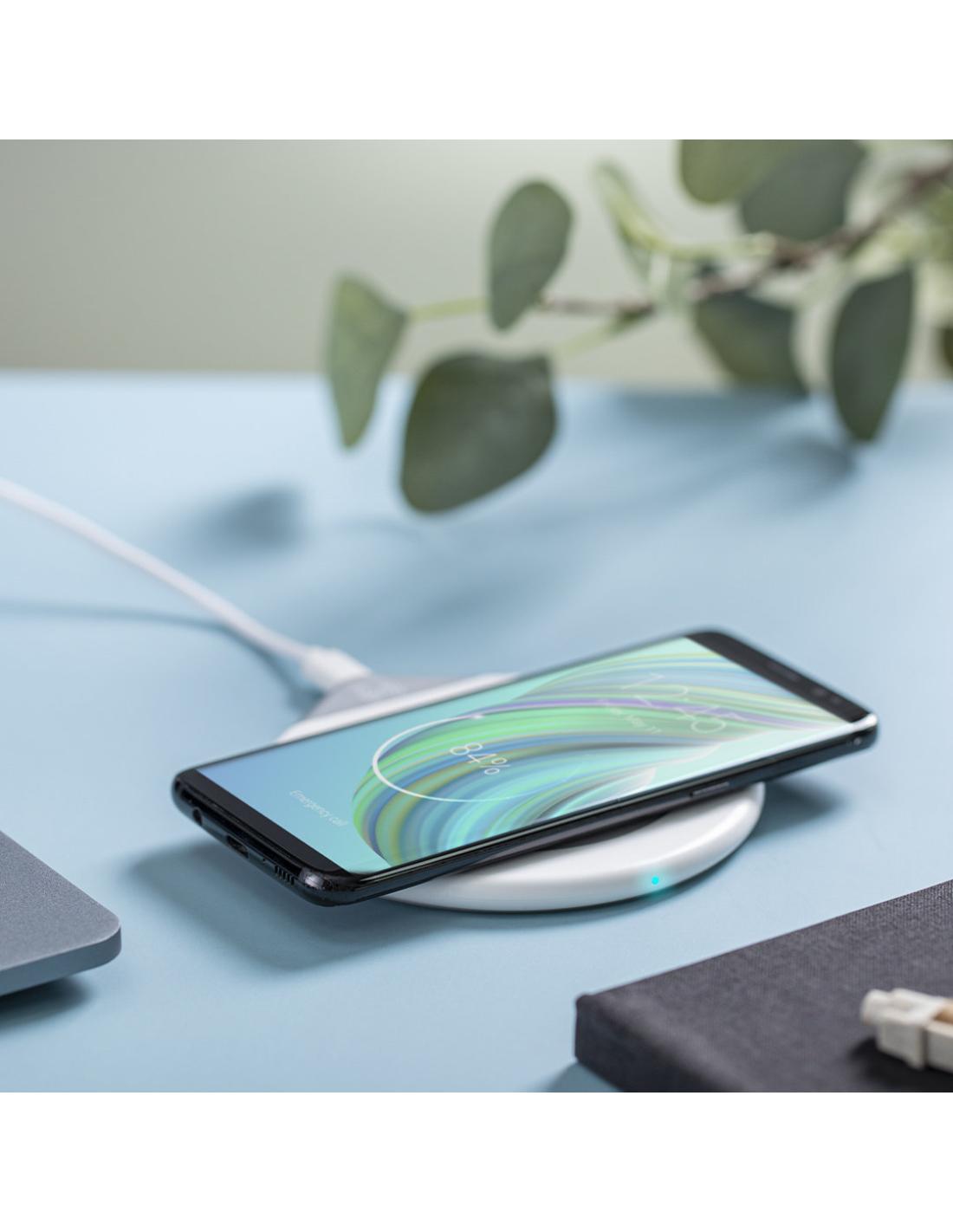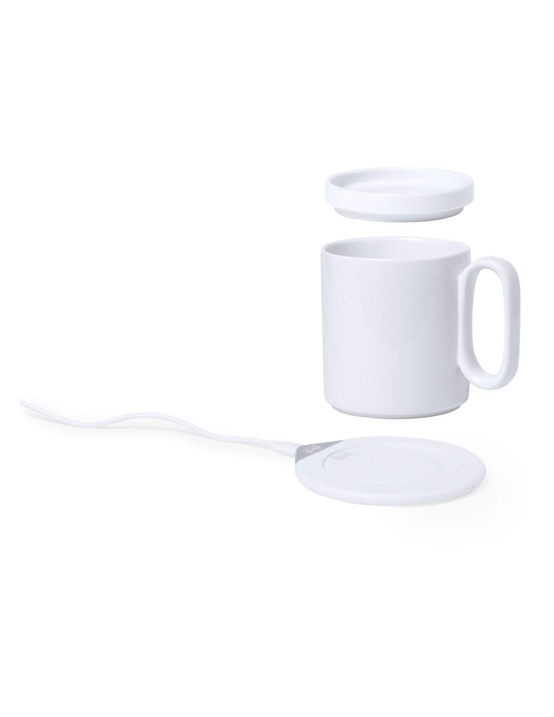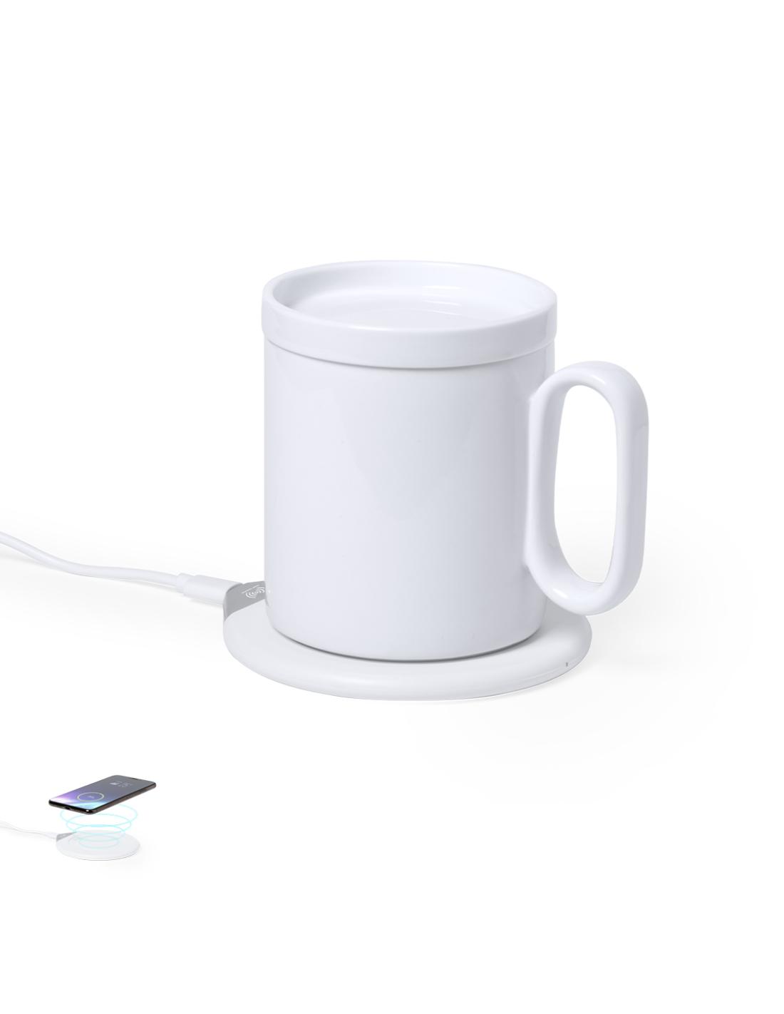 Calentador de tazas con cargador inalámbrico integrado de carga rápida -10W-. Con taza de cerámica de 350 ml, especialmente diseñada para calentar y mantener la temperatura de la bebida, con tapa a juego. Incluye cargador de pared y cable de carga Tipo C. Set presentado en atractiva caja de diseño.