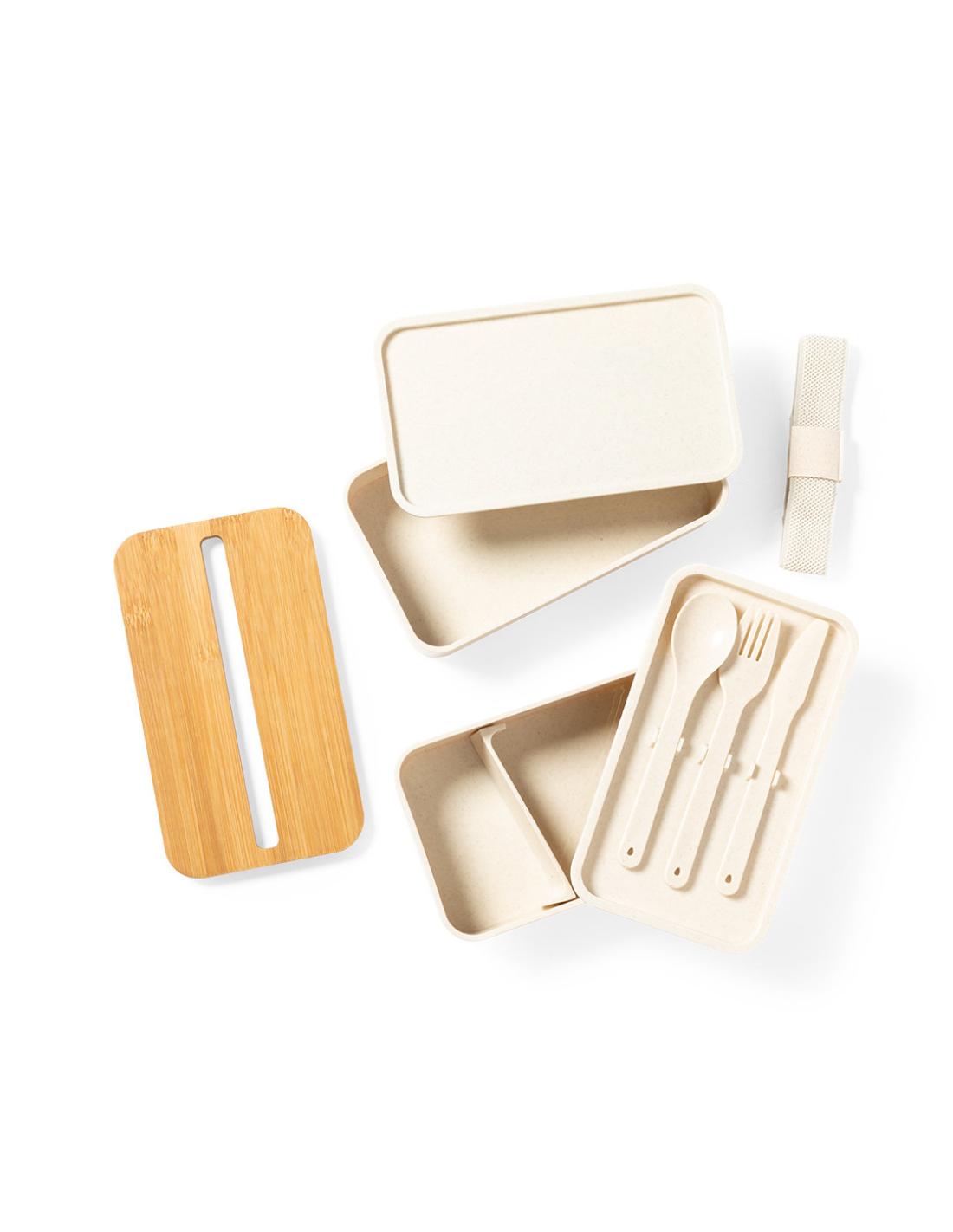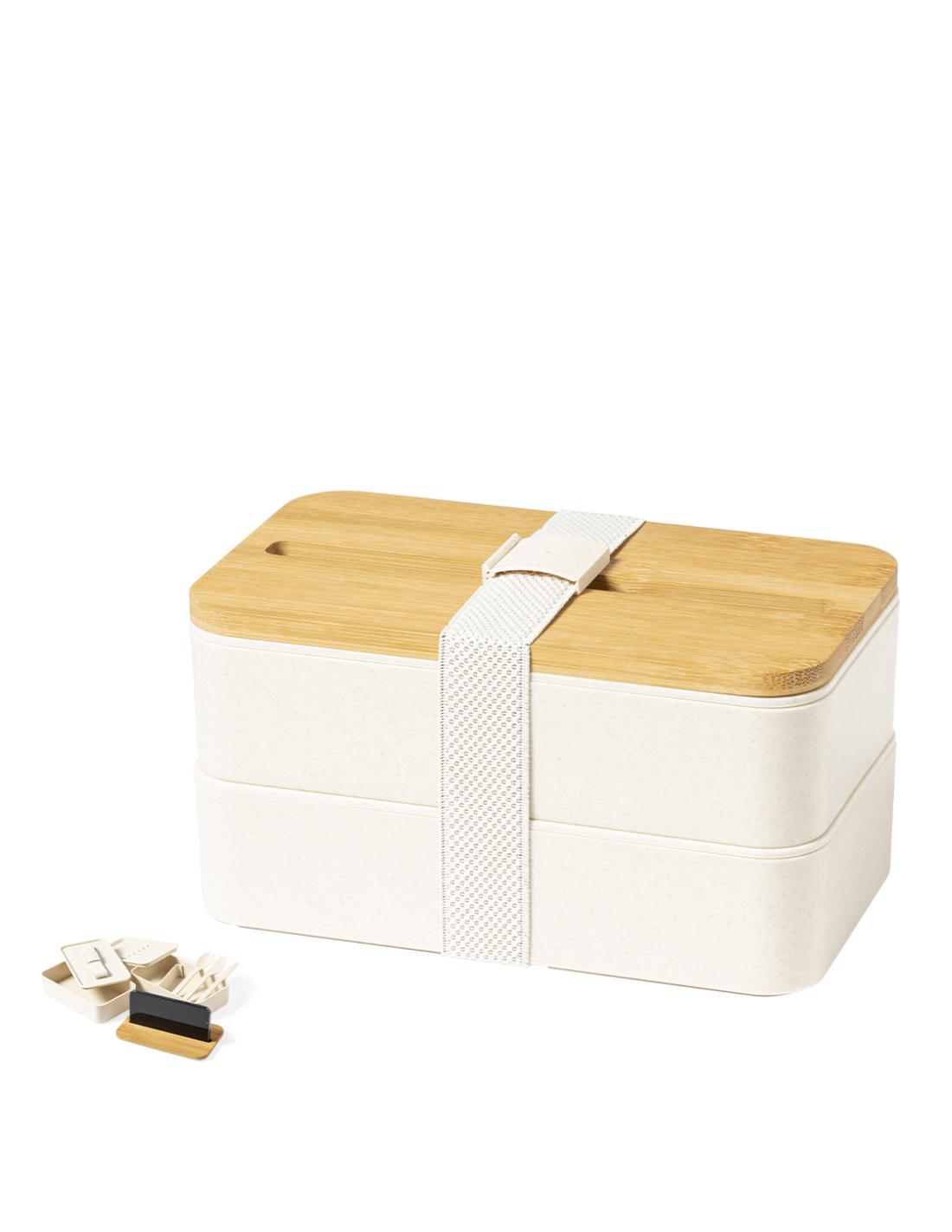 Original set de fiambreras de 1,4l en resistente material PP veteado libre de BPA. Original tapa de bambú con soporte para smartphone integrado. Dos compartimentos, cada uno de 700 ml de capacidad y compartimento interior con tenedor, cuchara y cuchillo. Incluye cinta de seguridad exterior. Certificación Food Grade, garantizando la seguridad cuando los alimentos entran en contacto con el material usado para fabricar el producto.
