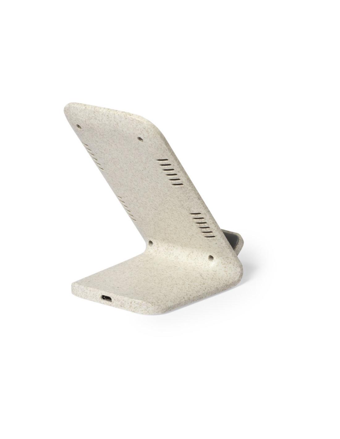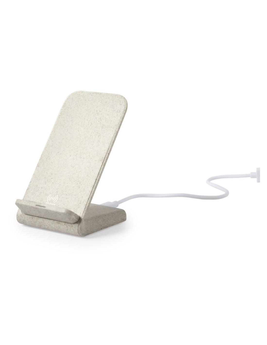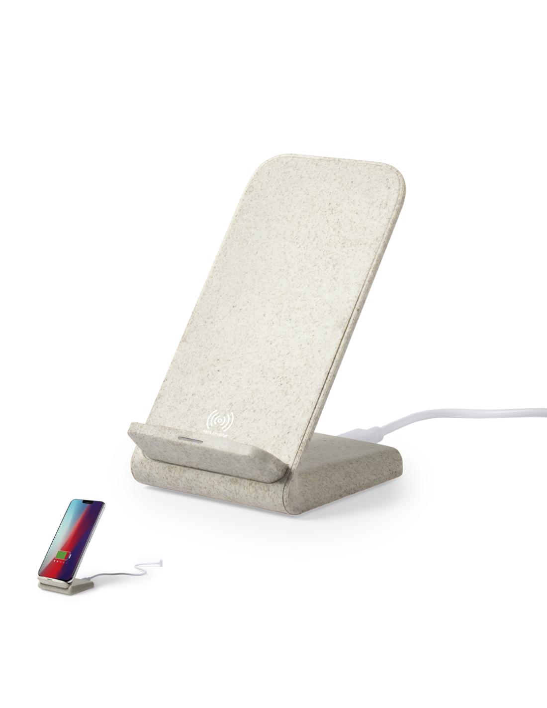 Cargador inalámbrico de línea nature con función soporte para móvil. Carcasa en caña de trigo, para así fomentar la utilización de materias primas naturales y reducir las emisiones contaminantes. Con función carga rápida de 10W y compatible con dispositivos equipados con tecnología de carga inalámbrica. Con luz indicadora de estado de carga y cable de 100 cm. Amplia superficie de marcaje, presentado en atractiva caja de diseño eco.