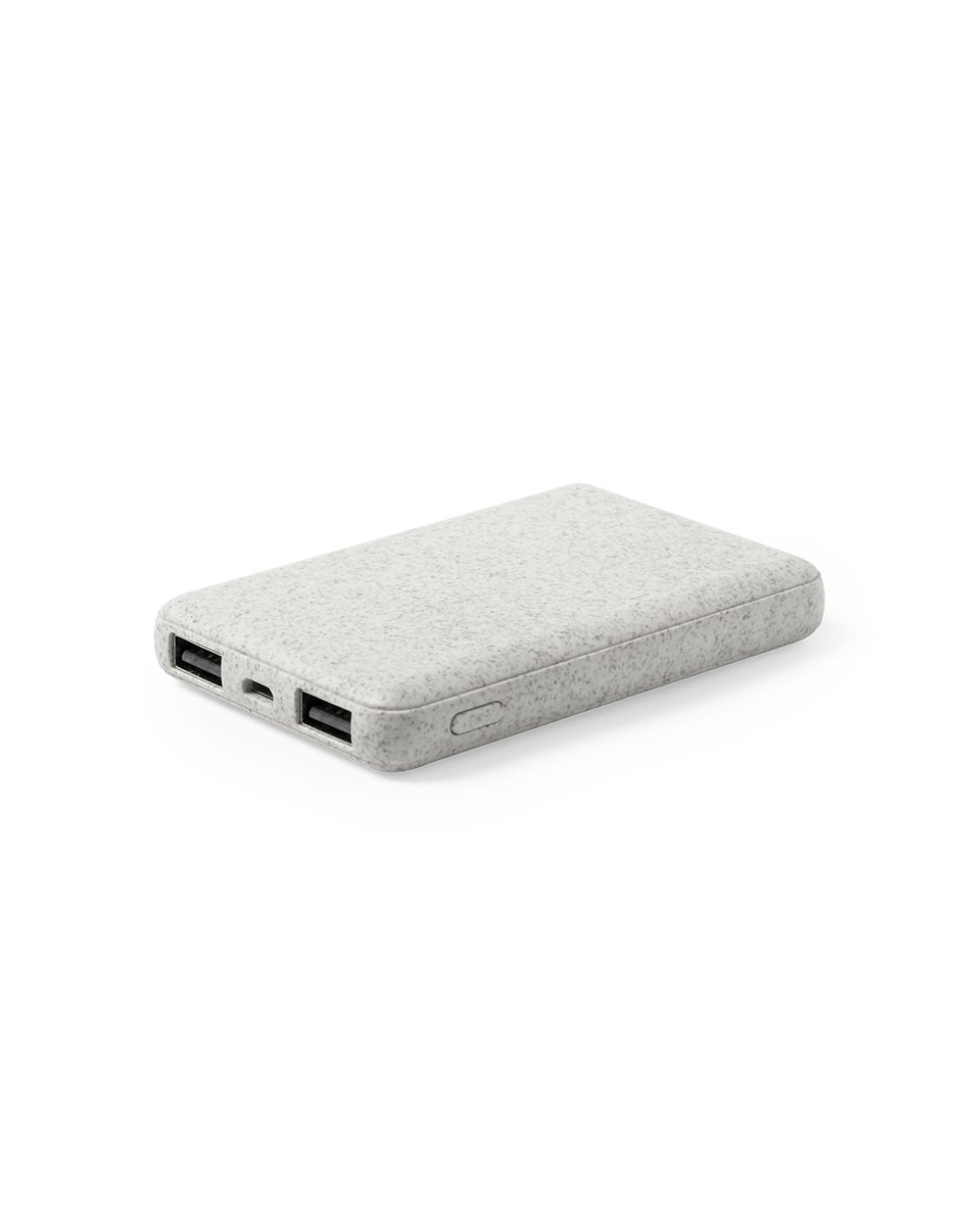 Batería auxiliar externa de línea nature de tamaño ultra compacto, con carcasa en caña de trigo, para así fomentar la utilización de materias primas naturales y reducir las emisiones contaminantes. 5.000 mAh de capacidad de carga e indicador de estado de carga. Salida USB dual para carga simultánea de 2 dispositivos y entrada micro USB -cable incluido-. Con amplia superficie de marcaje y presentado en atractiva caja de diseño eco. Las capacidades mostradas en todas nuestras baterías auxiliares externas son reales, incorporando todas ellas baterías de grado A y no recicladas, con una vida útil de al menos 500 ciclos de carga y según normativa CE. Además, están fabricadas conforme a los estándares RoHS y en cumplimiento con los siguientes requisitos de seguridad: Sistema de protección contra sobrecarga...