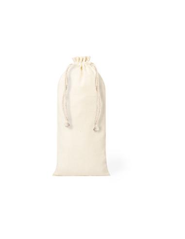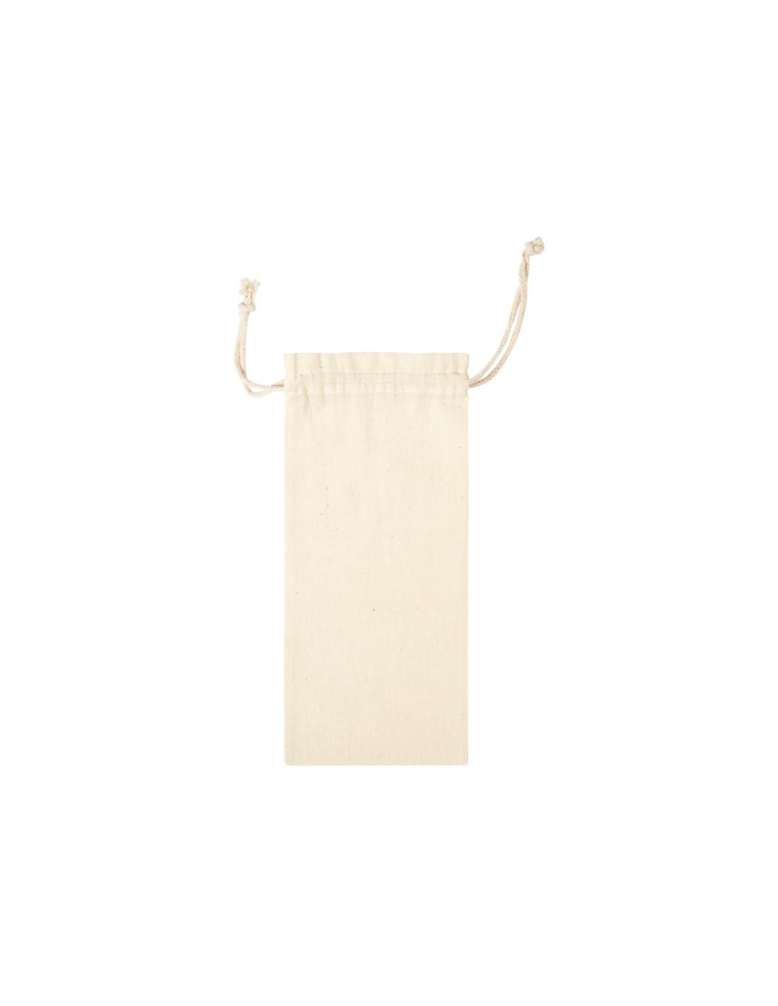 Bolsa de línea nature en material 100% algodón de 105g/m2. Tamaño 12x33 cm, de acabado cosido y con cordones autocierre de algodón. Especialmente diseñada para packaging en botellas y termos.