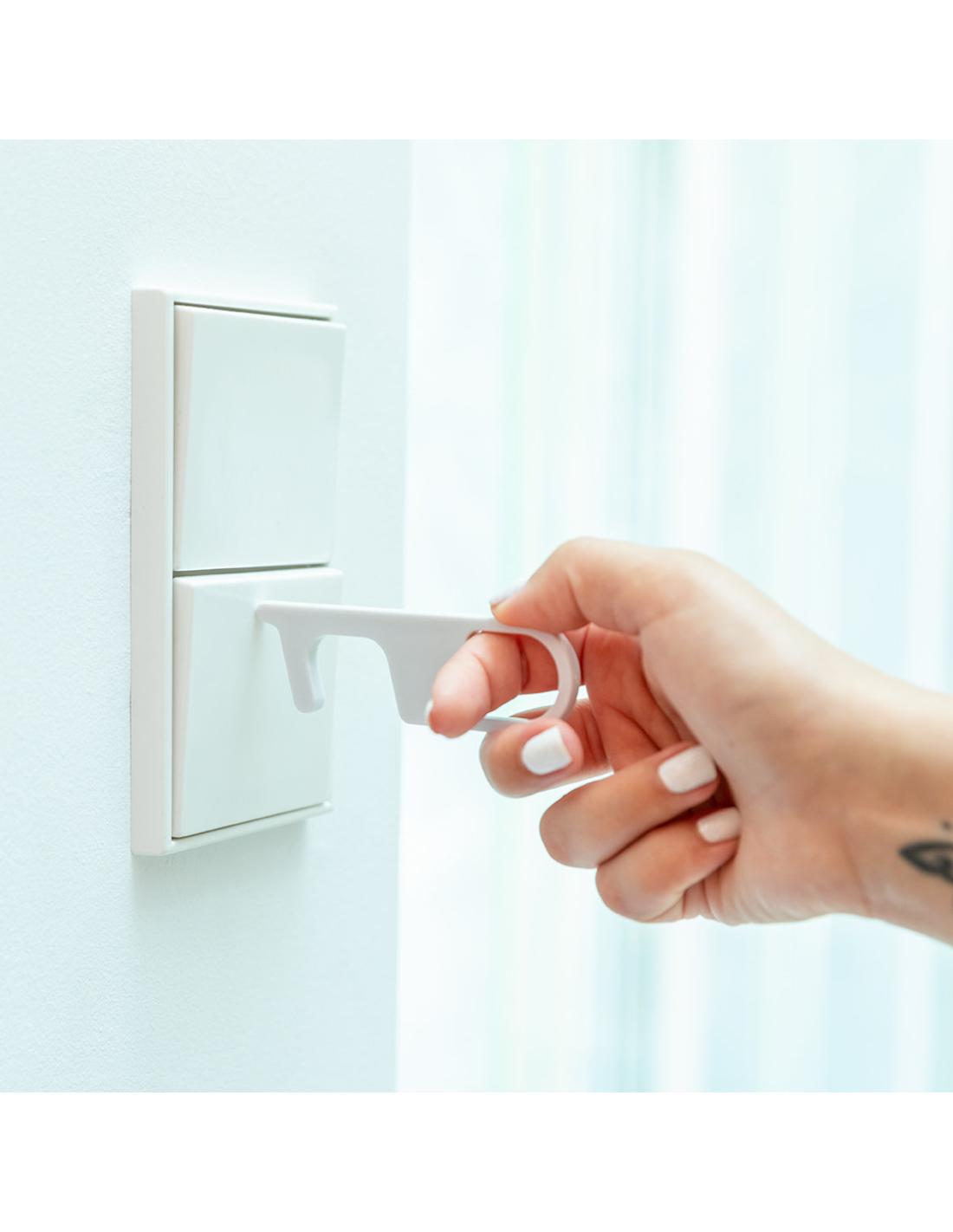 Llavero higiénico antibacteriano y anti-contacto, fabricado en resistente ABS de acabado sólido. Especialmente diseñado para evitar tocar con las manos superficies de uso común (picaportes de puertas, interruptores, grifos de uso público, cajeros automáticos...). Con cómodo troquel para el dedo y presentado en bolsita individual. Recomendado para marcaje en tampografía.Los productos con tratamientos antibacterianos son capaces de reducir drásticamente las cargas bacterianas presentes en las superficies de los materiales, gracias a la incorporación de agentes microbianos permanentes estáticos, con alta efectividad para inhibir y prevenir la contaminación bacteriana.Artículo de acuerdo al estándar ISO 22196, que determina la actividad antibacteriana en materiales plásticos y superficies no porosas, lo que...