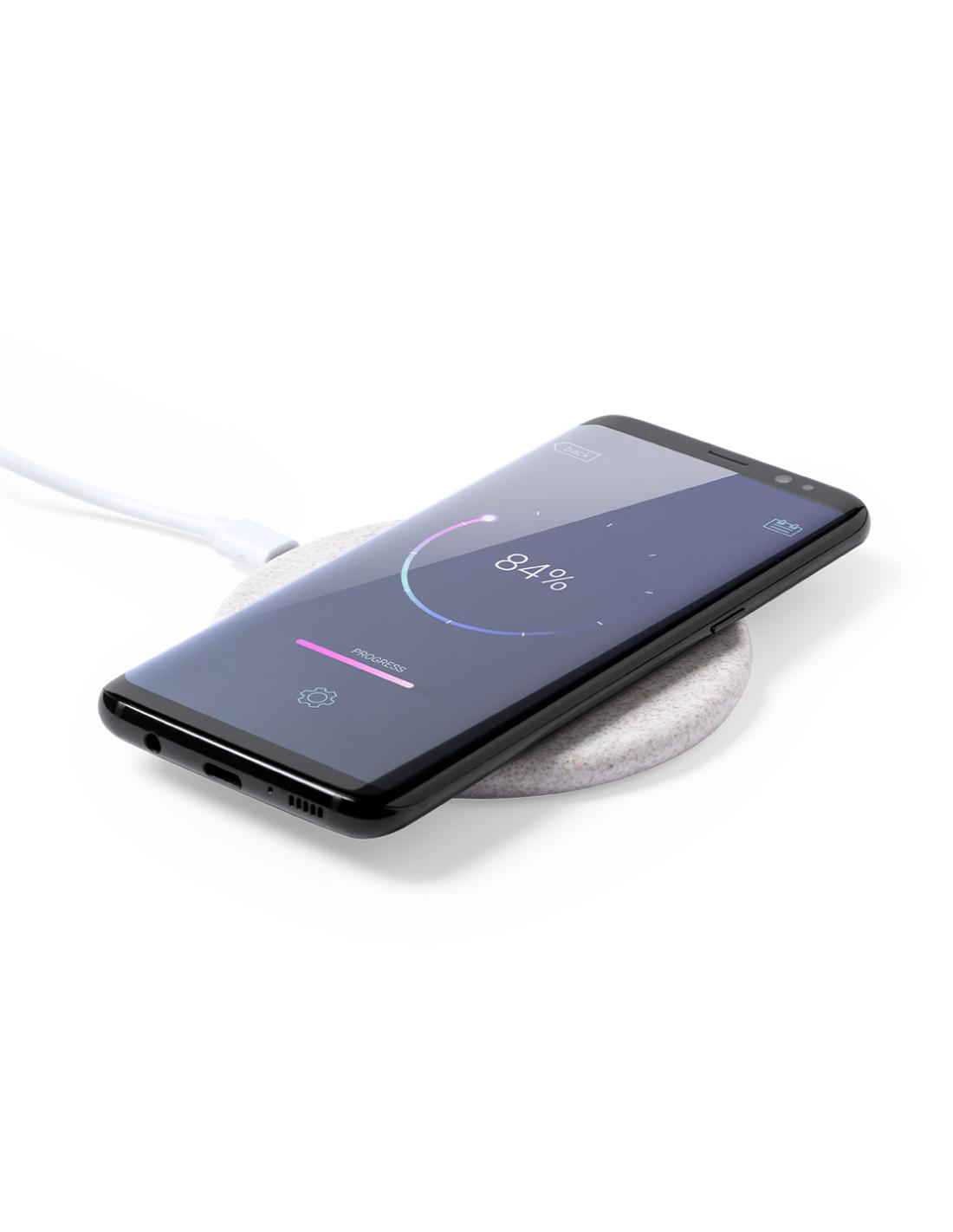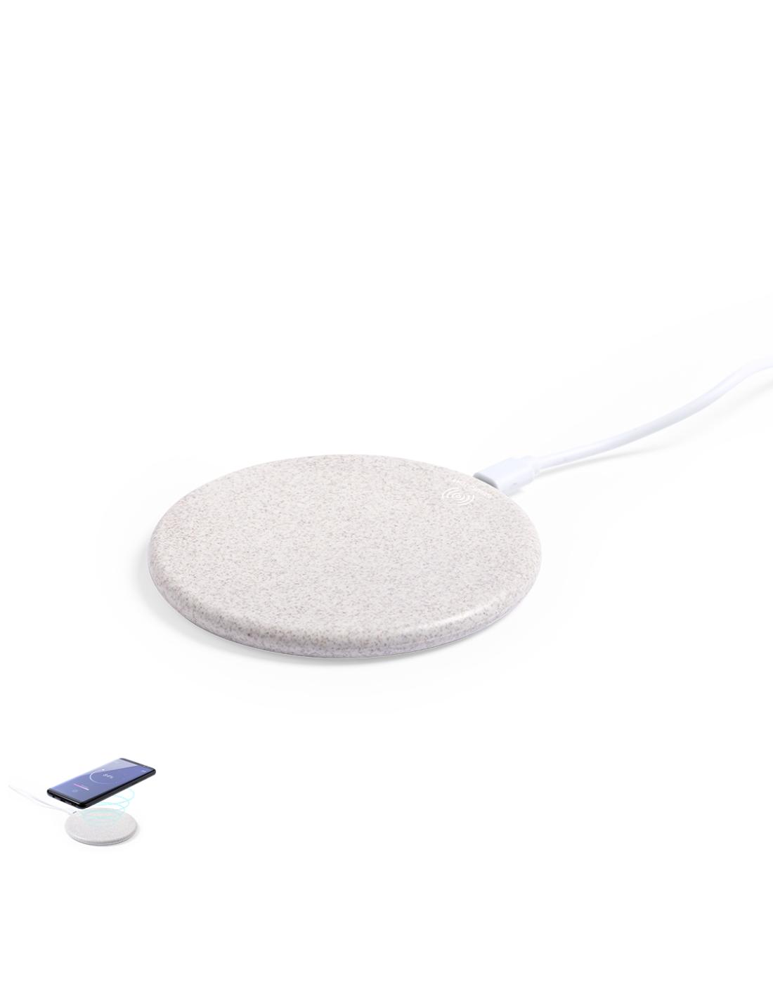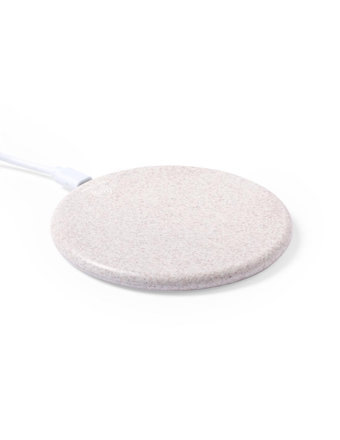 Cargador inalámbrico de diseño circular fabricado en caña de trigo, para así fomentar la utilización de materias primas naturales y reducir las emisiones contaminantes. Con función carga rápida de 10W e indicador led. Cable de carga micro USB incluido y compatible con dispositivos equipados con tecnología de carga inalámbrica. Protección de seguridad para evitar sobrecalentamiento, sobrecarga y cortocircuito. Presentado en atractiva caja de diseño nature.