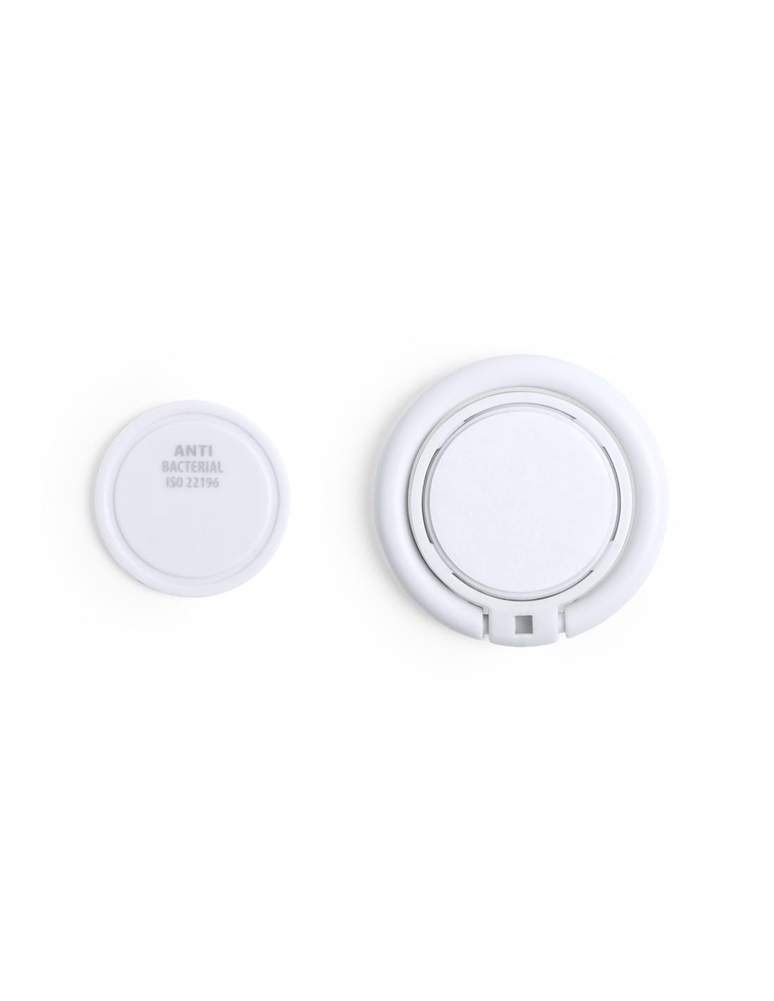 Soporte antibacteriano con adhesivo 3M extra fuerte. Ideal para smartphone, con moneda para carro integrada y anilla posterior 360º para el dedo, válida como soporte y accesorio para selfies.Los productos con tratamientos antibacterianos son capaces de reducir drásticamente las cargas bacterianas presentes en las superficies de los materiales, gracias a la incorporación de agentes microbianos permanentes estáticos, con alta efectividad para inhibir y prevenir la contaminación bacteriana.Artículo de acuerdo al estándar ISO 22196, que determina la actividad antibacteriana en materiales plásticos y superficies no porosas, lo que permite conocer la efectividad de inhibición microbiana que tienen los aditivos sobre los objetos tratados mediante una evaluación cuantitativa.