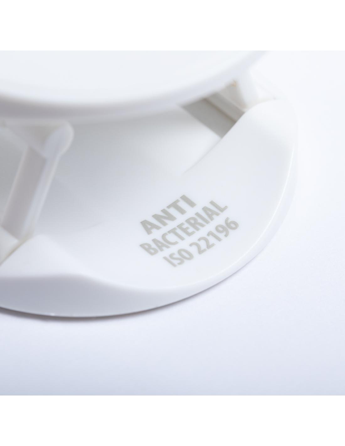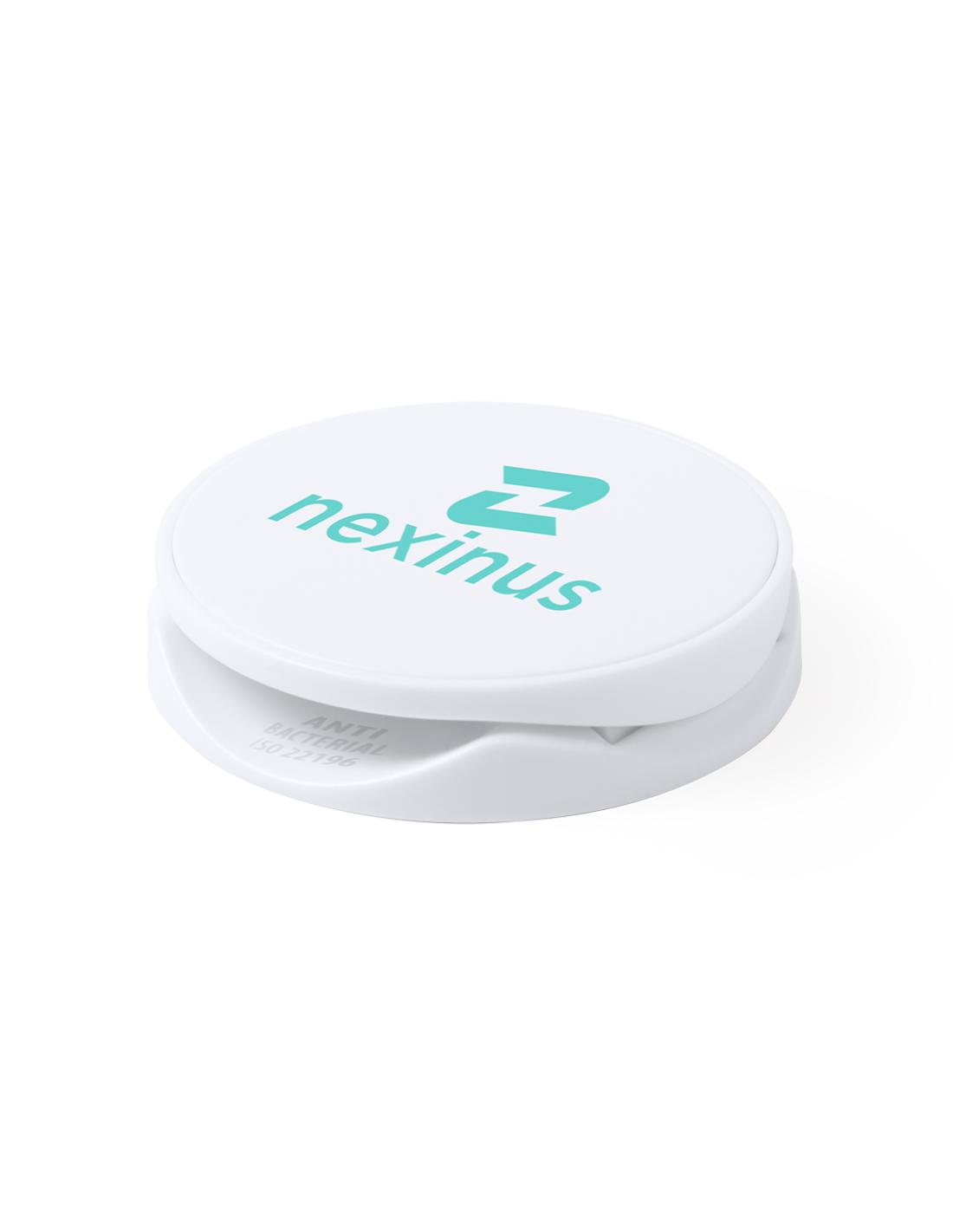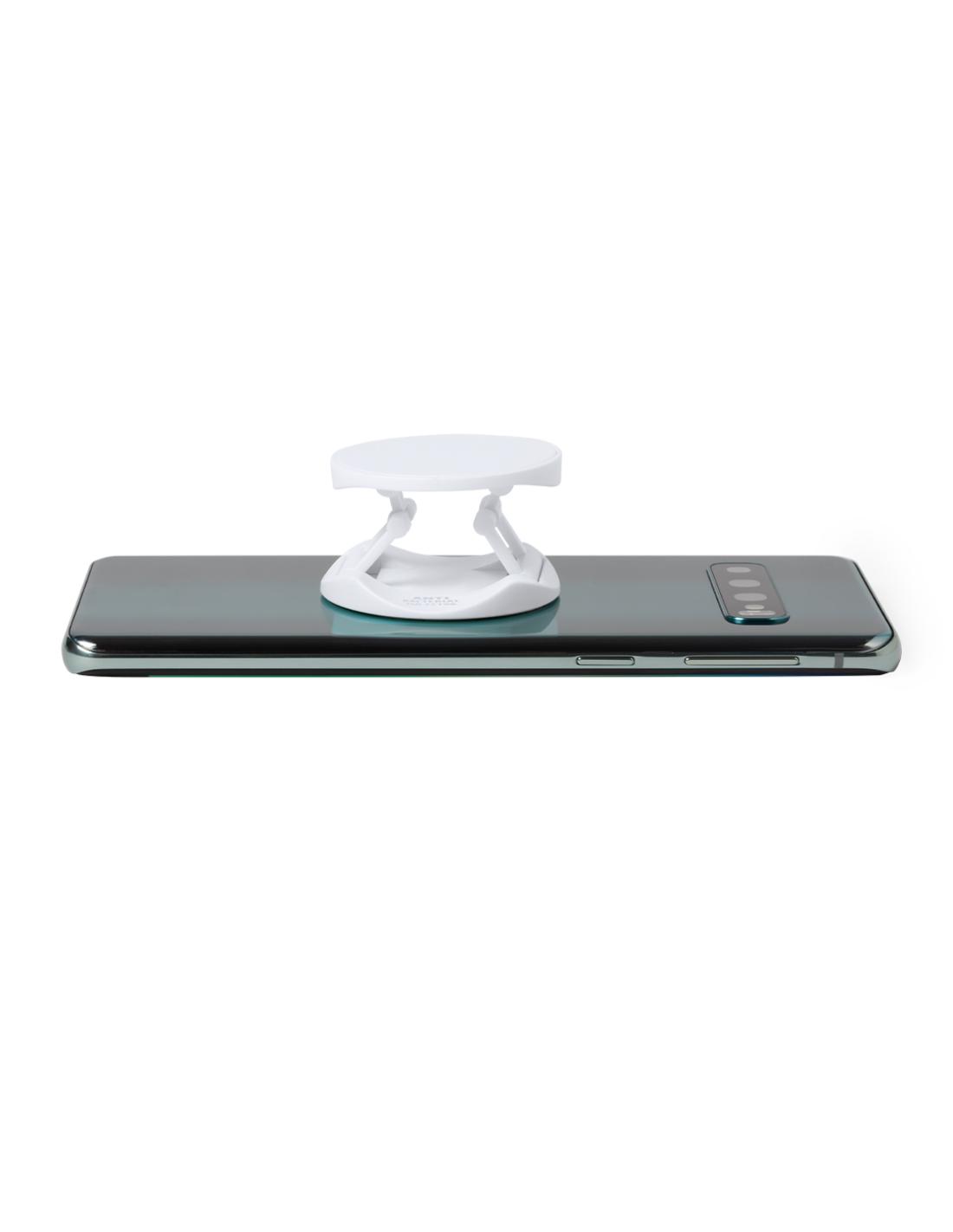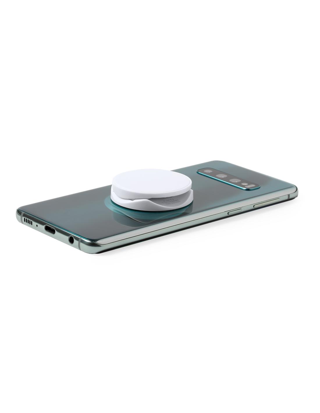 Soporte antibacteriano para smartphone. Diseño plegable en elegante acabado de color blanco, especialmente diseñado para marcaje en tampografía. Con adhesivo 3M, de fijación extra fuerte y libre de residuos al despegarlo del dispositivo.Los productos con tratamientos antibacterianos son capaces de reducir drásticamente las cargas bacterianas presentes en las superficies de los materiales, gracias a la incorporación de agentes microbianos permanentes estáticos, con alta efectividad para inhibir y prevenir la contaminación bacteriana.Artículo de acuerdo al estándar ISO 22196, que determina la actividad antibacteriana en materiales plásticos y superficies no porosas, lo que permite conocer la efectividad de inhibición microbiana que tienen los aditivos sobre los objetos tratados mediante una evaluación cuantitativa.