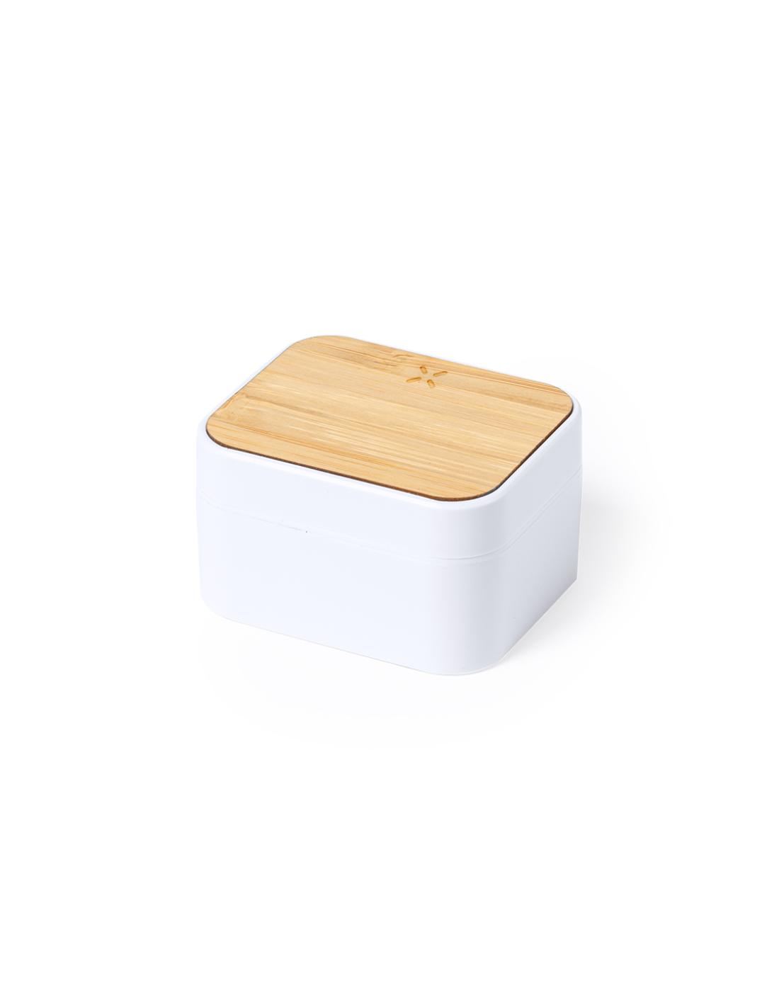 Auriculares intraurales de línea nature. Fabricados en resistente ABS con detalles en bambú en auriculares y base. Conexión Bluetooth 5.0 y función manos libres, con botón de control táctil en el auricular. Incluye cargador inalámbrico 10W integrado en la tapa de bambú de la base de caga. Recargables por USB, con cable Tipo C incluido. Presentados en caja individual de diseño eco en cartón kraft.