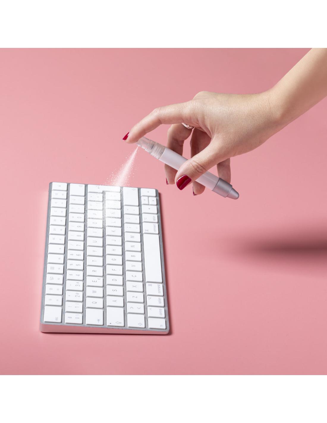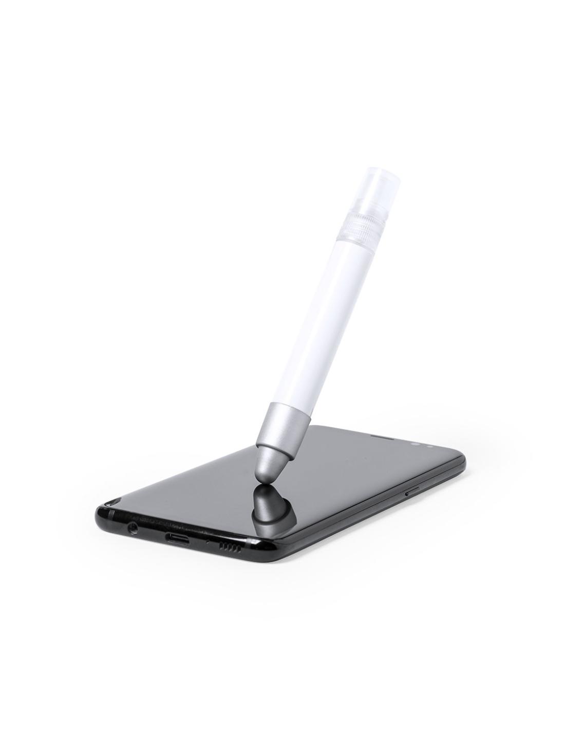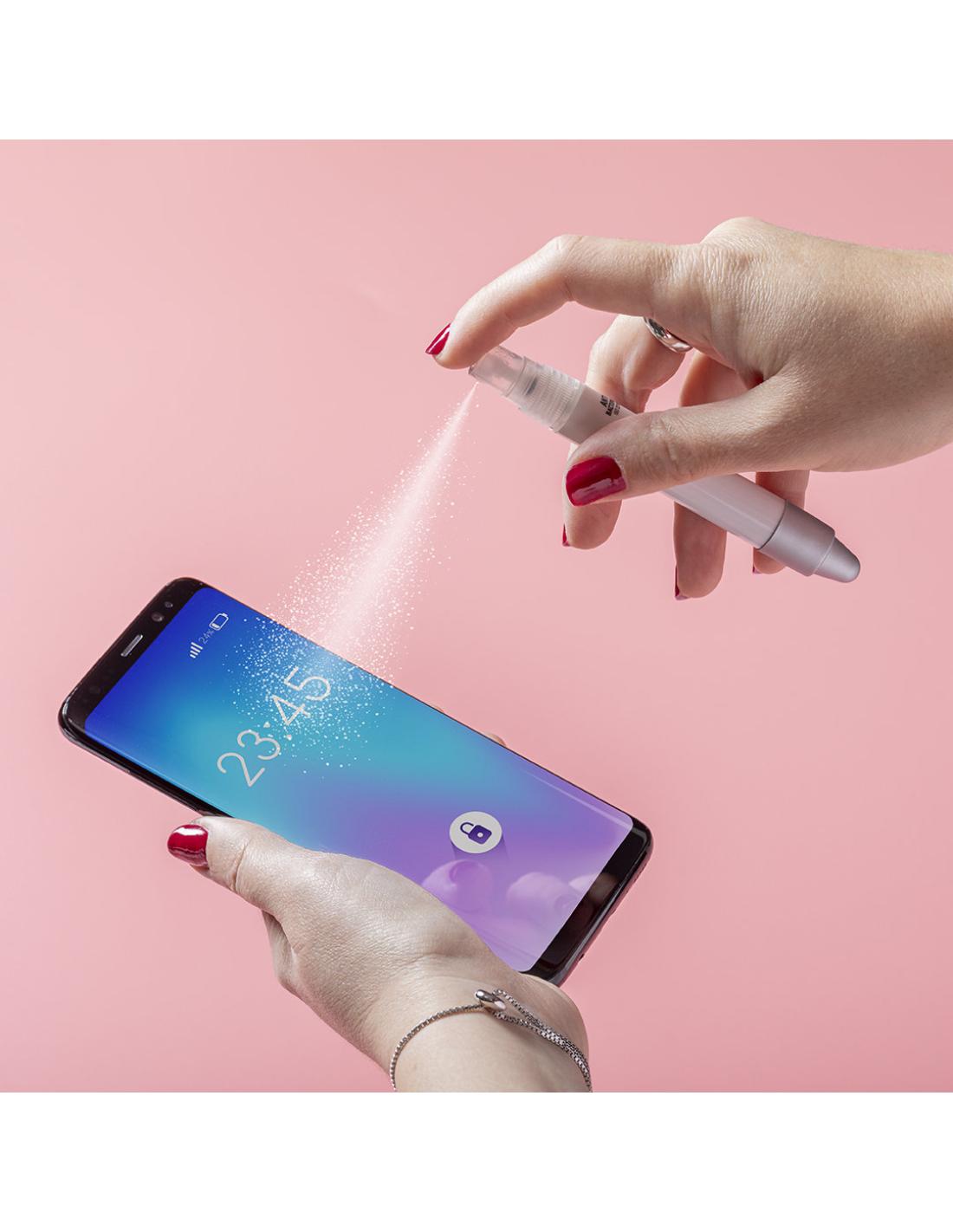 Bolígrafo antibacteriano con pulverizador recargable integrado y capucha protectora con puntero en color gris. Acabado liso en resistente ABS brillante con detalles cromados y escritura en tinta azul. Capacidad del pulverizador 3ml. Líquido no incluido.Los productos con tratamientos antibacterianos son capaces de reducir drásticamente las cargas bacterianas presentes en las superficies de los materiales, gracias a la incorporación de agentes microbianos permanentes estáticos, con alta efectividad para inhibir y prevenir la contaminación bacteriana.Artículo de acuerdo al estándar ISO 22196, que determina la actividad antibacteriana en materiales plásticos y superficies no porosas, lo que permite conocer la efectividad de inhibición microbiana que tienen los aditivos sobre los objetos tratados mediante...