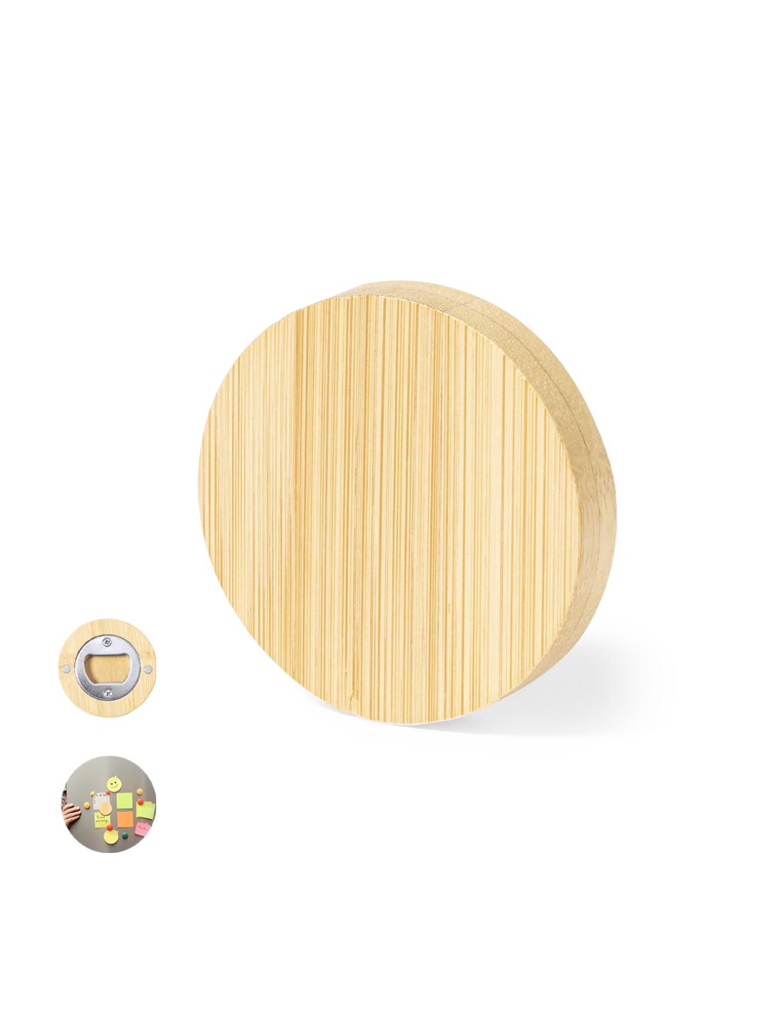 Original abridor magnético de línea nature, fabricado en resistente bambú, con sistema de apertura metálico.