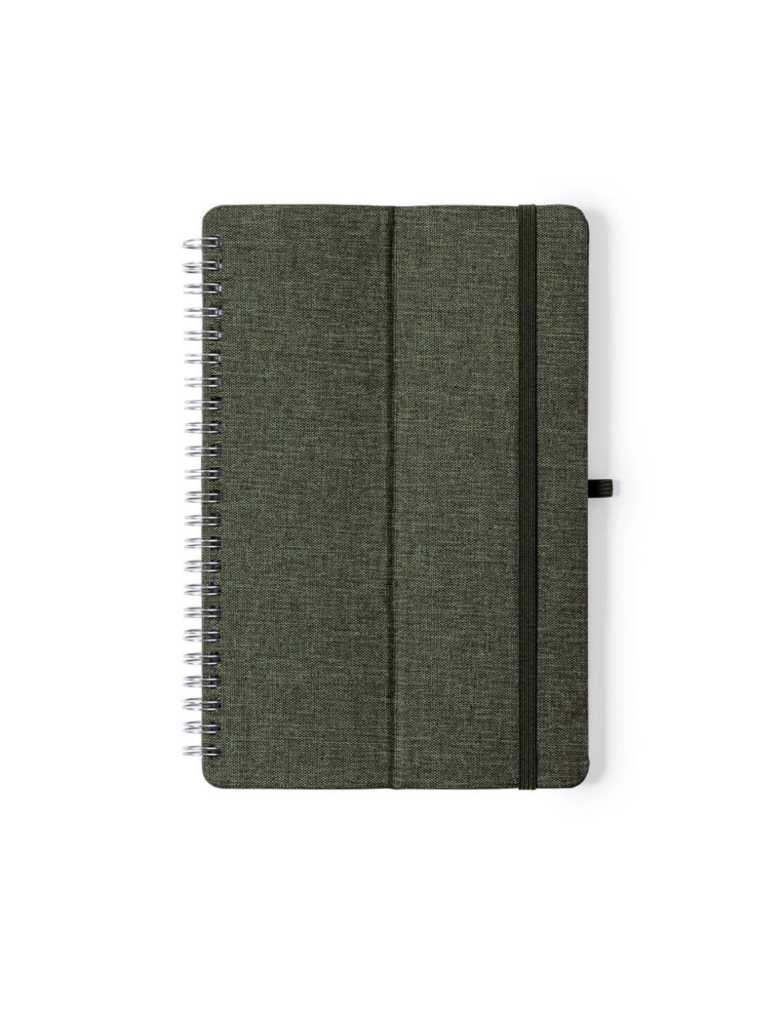 Libreta soporte de anillas de línea nature. Tapas rígidas fabricadas en resistente material RPET 300D, elaborado a partir de plástico reciclado. Con original soporte para smartphone y tablet integrado en la portada y fabricado en caña de trigo. Incluye elástico de cierre y soporte para bolígrafo a juego. 70 hojas interiores con disposición a una raya y disponible en variada gama de colores. Con distintivo RPET en contraportada y presentada en bolsa individual reciclada.