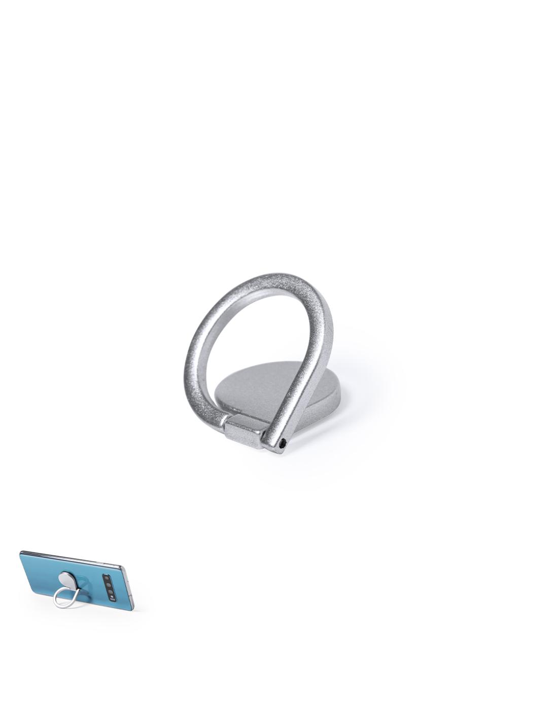 Soporte metálico para smartphone en acabado mate. De elegante diseño y con adhesivo 3M, de fijación extra fuerte y libre de residuos al despegarlo del dispositivo. Con anilla soporte posterior para dedo y presentado en bolsita individual de diseño.