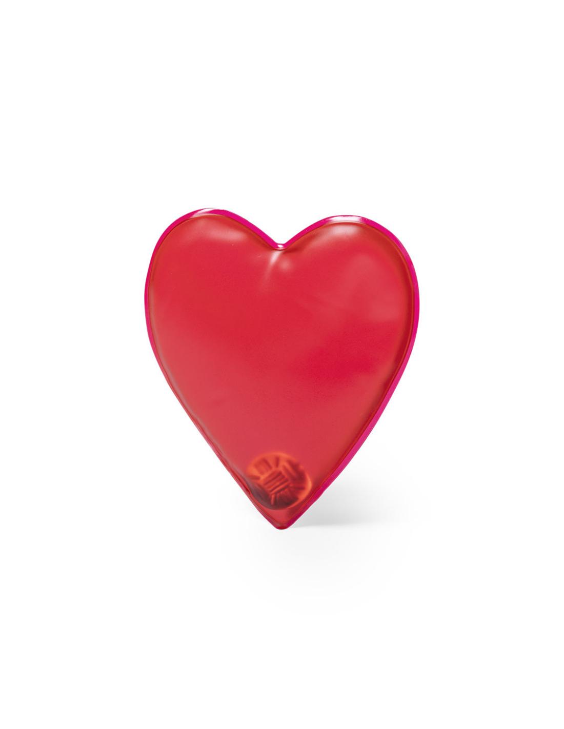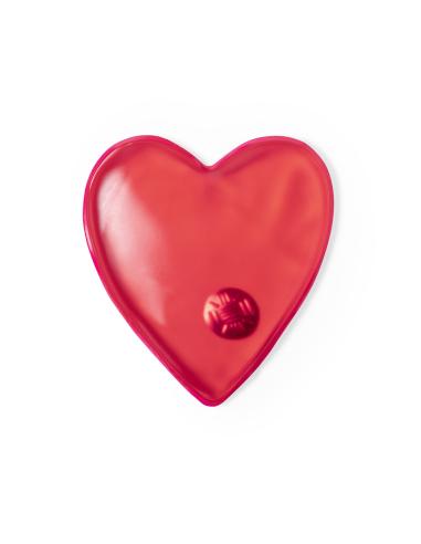Parche térmico con diseño corazón. Reutilizable y con efecto calor de duración prolongada. Se activa doblando la chapa metálica para que el parche se endurezca y se caliente. Para reutilizar, se calienta agua en un recipiente con el parche dentro hasta que el gel interior vuelva a su estado líquido, presionando la chapa metálica de nuevo. Disponible manual de instrucciones en español e inglés.