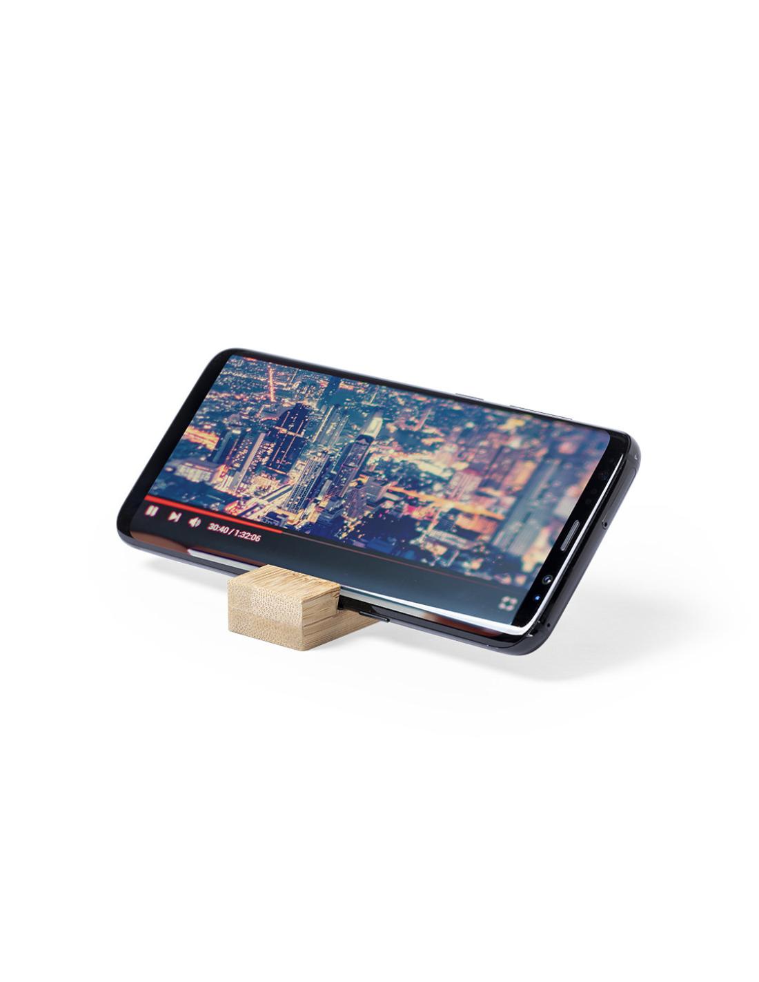 Llavero soporte de línea nature para smartphone. Fabricado en resistente bambú de acabado lacado, con resistente cordón y anilla metálica.