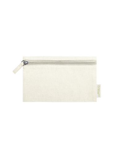 Neceser de línea nature elaborado en algodón reciclado. Compartimento principal de cierre de cremallera y tirador juego, con distintivo algodón reciclado en etiqueta.
