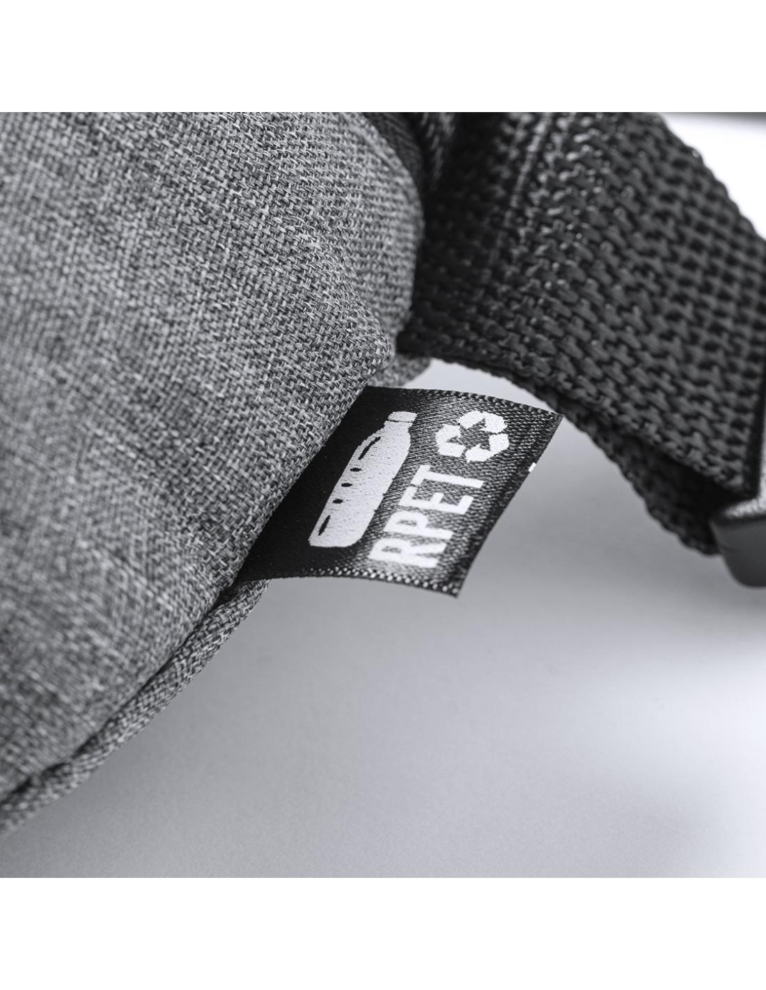 Riñonera de línea nature fabricada en resistente 600D RPET efecto melange. Elaborado a partir de plástico reciclado para así fomentar la reutilización de residuos plásticos y contribuir a la sostenibilidad del planeta. Compartimento principal con cierre de cremallera y cinta ajustable con cierre de hebilla. Diseñada para actividades deportivas y de ocio, con distintivo RPET en etiqueta exterior.