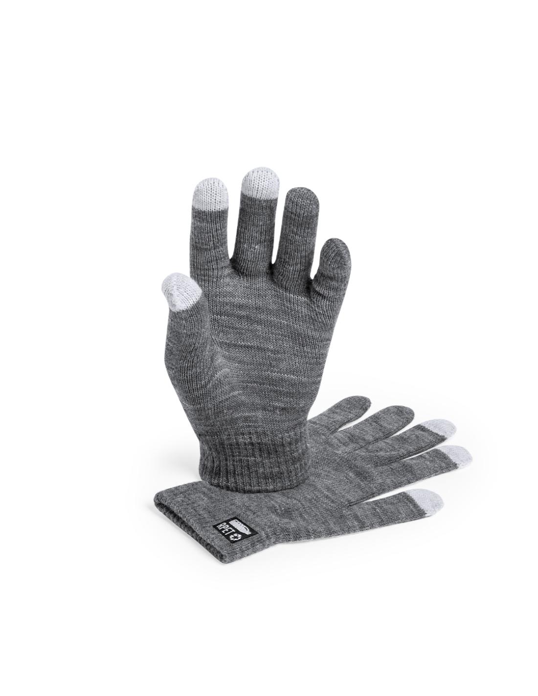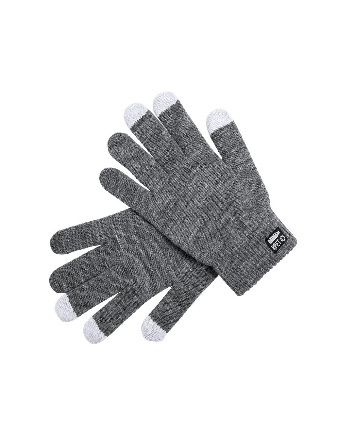 Práctico par de guantes de línea nature para dispositivos con pantalla táctil. De cálido y suave acabado poliéster RPET, elaborado a partir de plástico reciclado para así fomentar la reutilización de residuos plásticos y contribuir a la sostenibilidad del planeta. Función táctil en dedos corazón, índice y pulgar. Talla única adulto, con distintivo RPET en etiqueta exterior.