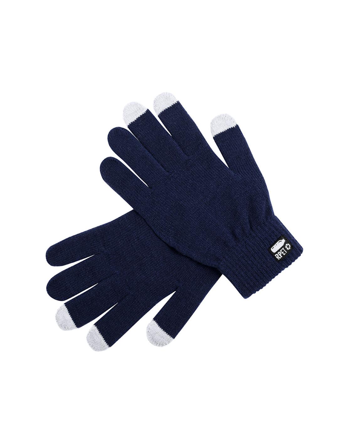 Práctico par de guantes de línea nature para dispositivos con pantalla táctil. De cálido y suave acabado poliéster RPET, elaborado a partir de plástico reciclado para así fomentar la reutilización de residuos plásticos y contribuir a la sostenibilidad del planeta. Función táctil en dedos corazón, índice y pulgar. Talla única adulto, con distintivo RPET en etiqueta exterior.