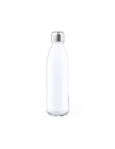 Bidón de 650ml de capacidad. Fabricado con cuerpo de cristal, disponible en variada gama de colores, y tapón a rosca de acero inox y acabado cromado. Presentado en caja individual de atractivo diseño.