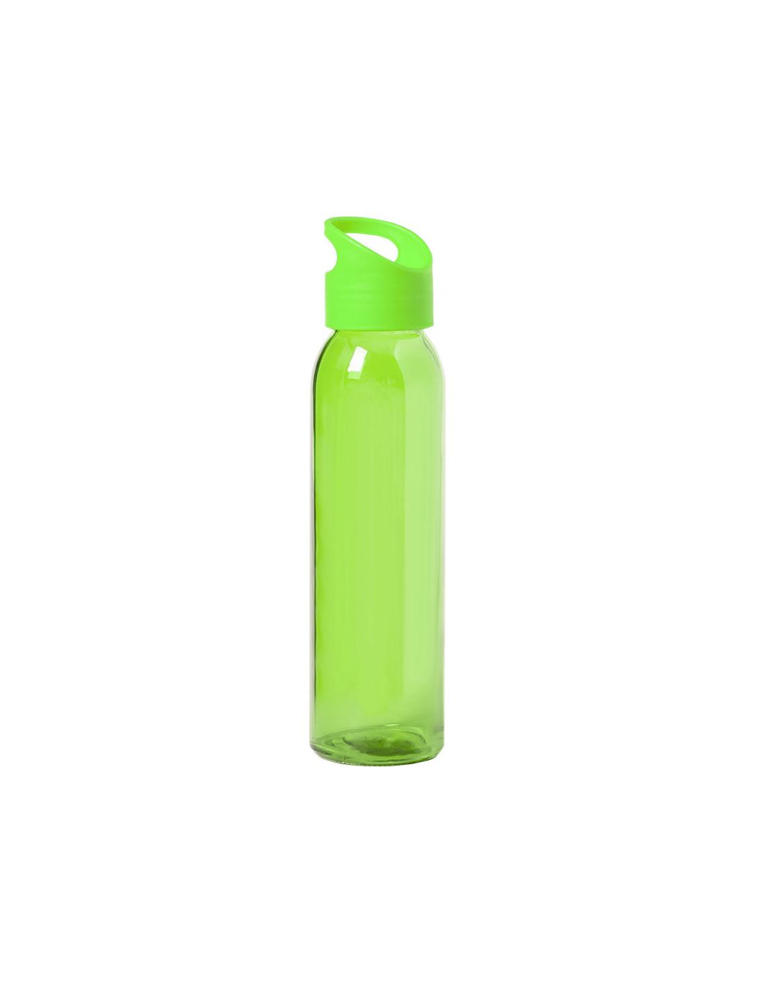 Bidón de 470ml de capacidad. Fabricado con cuerpo de cristal y disponible en variada gama de colores. Tapón a rosca en PP, libre de BPA, a juego. Presentado en caja individual de atractivo diseño.