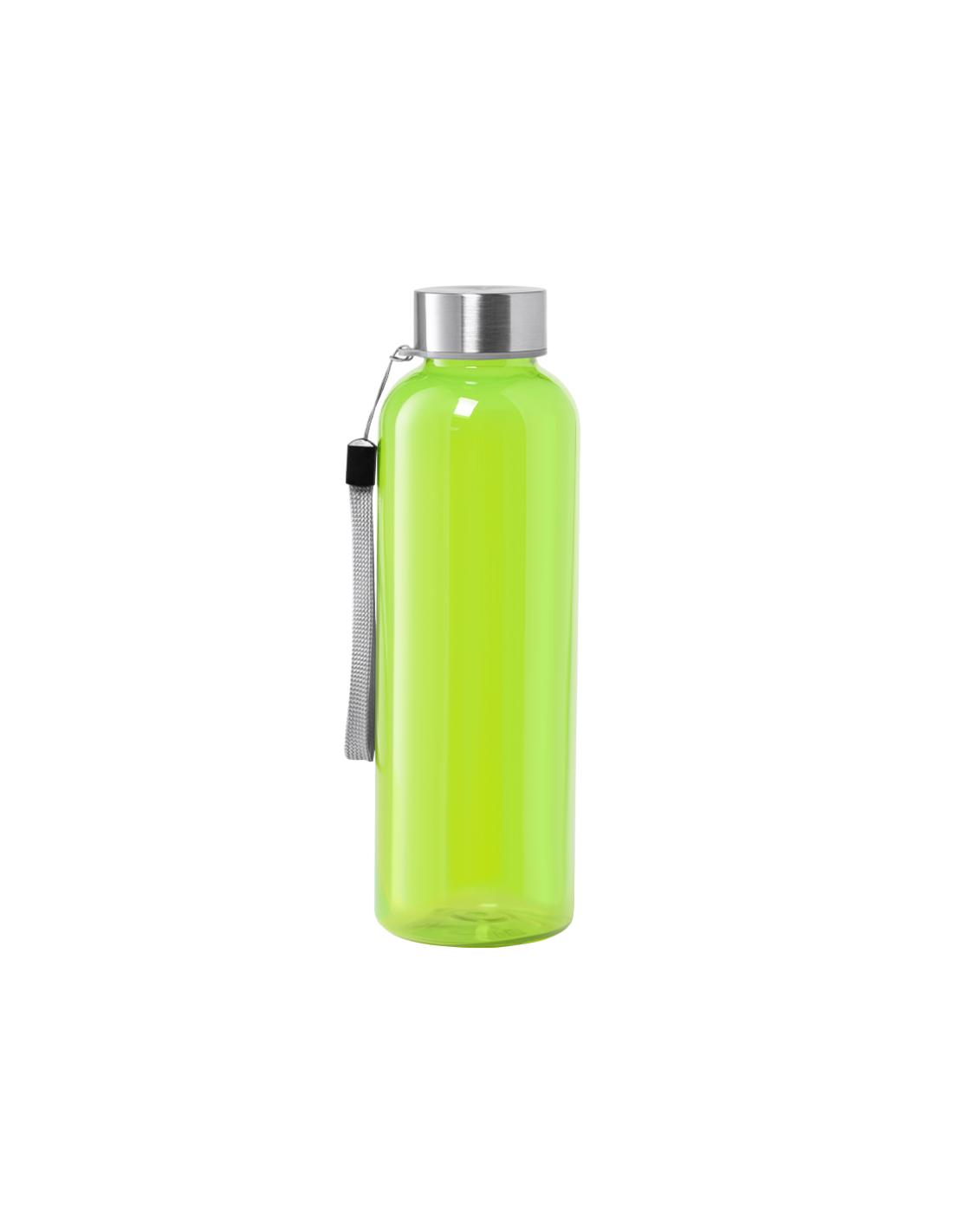 Bidón fabricado en RPET de 600ml de capacidad, libre de BPA. Tapón a rosca en acero inox, con cordón de transporte. Disponible en variada gama de colores.Elaborado a partir de plástico reciclado, para así fomentar la reutilización de residuos plásticos y ayudar a la sostenibilidad del planeta.