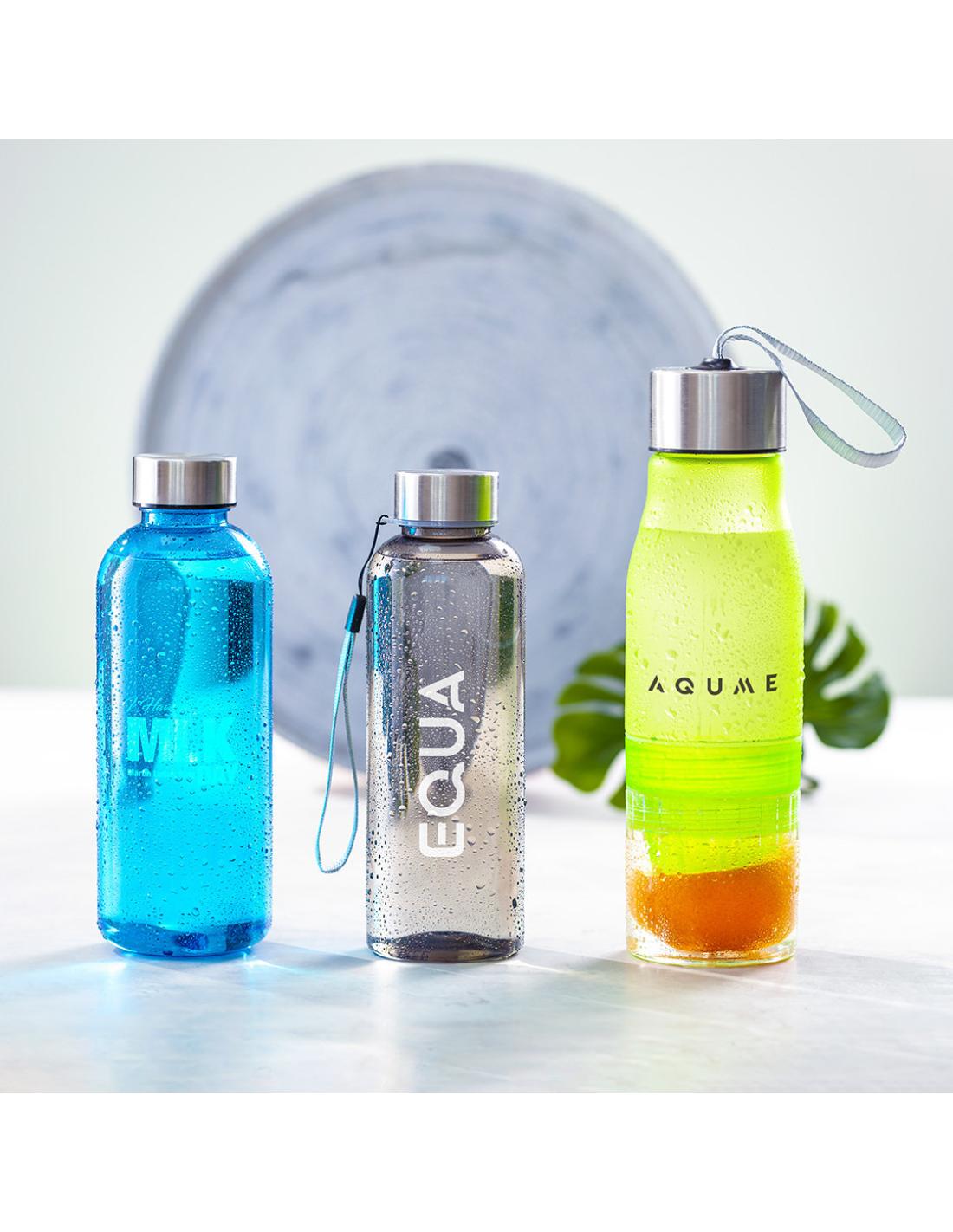 Bidón de 500ml de capacidad. Libre de BPA, con cuerpo fabricado en tritán transparente y de alta resistencia al calor. Tapón a rosca en acero inox, con cordón de transporte. Disponible en variada gama de colores.