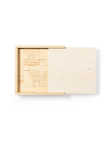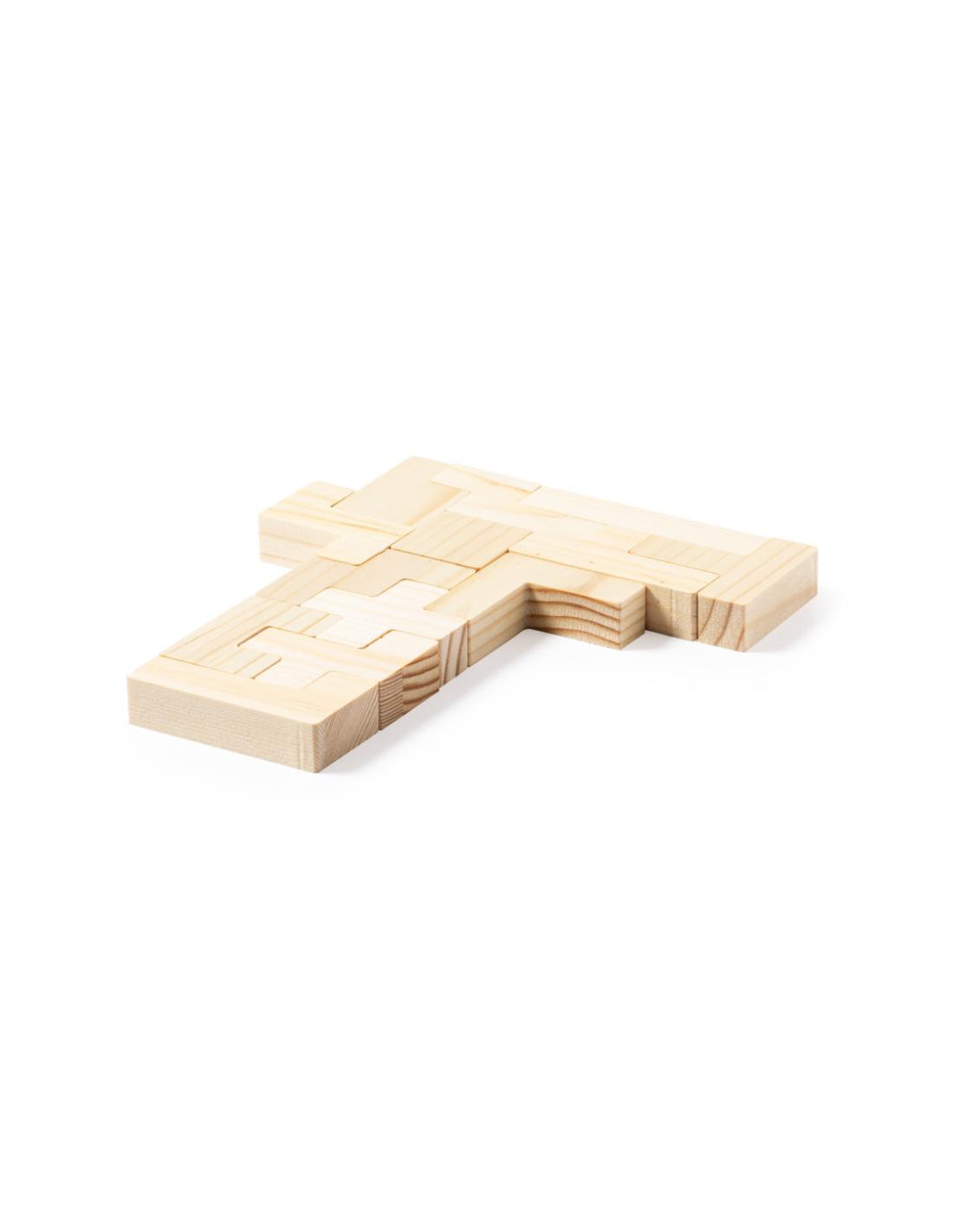 Juego de habilidad fabricado en resistente madera. Con 13 piezas en caja de madera con tapa. Presentación en caja individual de diseño kraft.