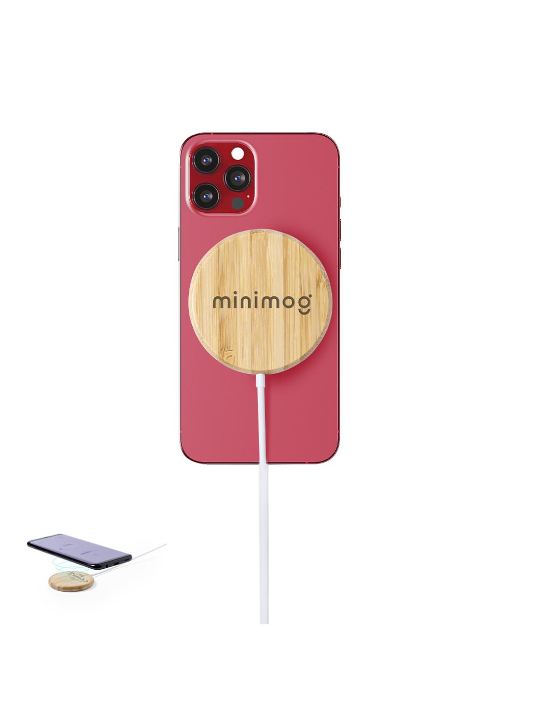Cargador inalámbrico magnético 10W de línea nature, con carcasa fabricada en resistente bambú. Con indicador de estado de carga y cable USB de 1m. Incluye accesorio metálico con adhesivo 3M, de fijación extra fuerte y libre de residuo al despegarlo del dispositivo, permitiendo así el uso de la función magnética del cargador en cualquier dispositivo móvil. Compatible con terminales equipados con tecnología de carga inalámbrica. Amplia superficie de marcaje y presentado en atractiva caja de diseño eco. Disponible manual de instrucciones en español e inglés.