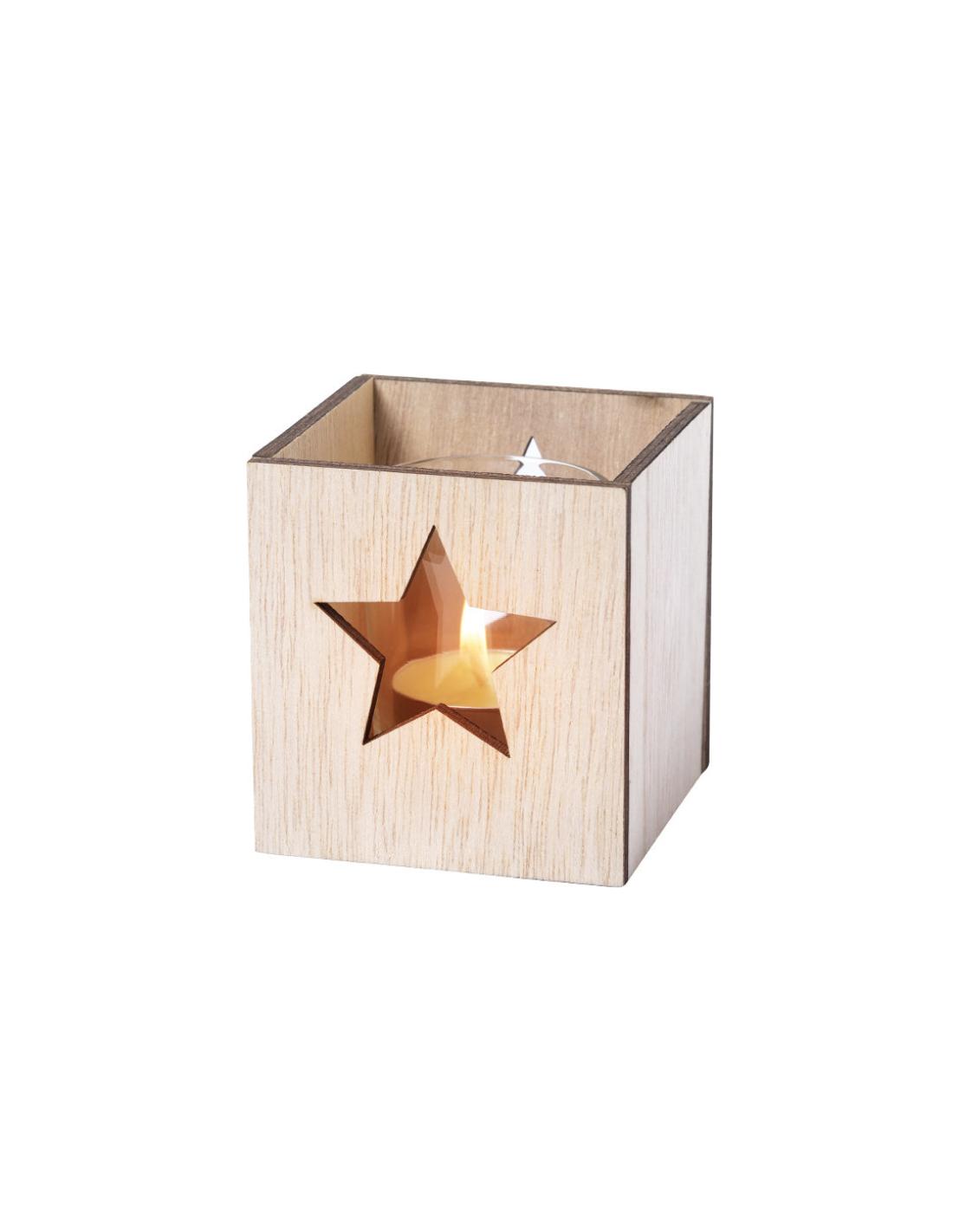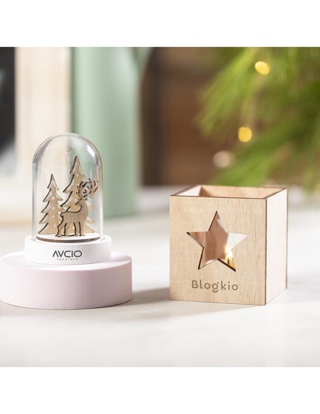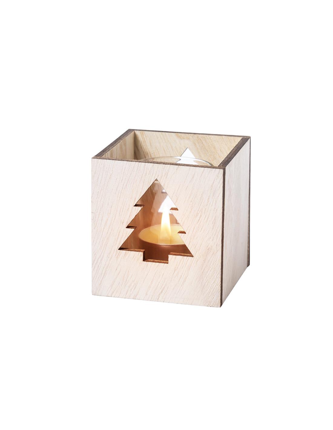 Vela aromática navideña de línea nature y aroma vainilla. Fabricada en cristal, con caja de madera troquelada y original diseño. Presentada en caja individual de color natural.