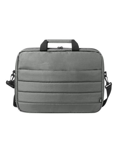 Maletín de línea nature con diseño urbano y acolchado total. Fabricado en resistente RPET 300D elaborado a partir de plástico reciclado, para así fomentar la reutilización de residuos plásticos y contribuir a la sostenibilidad del planeta. Accesorio para ajuste en trolley, con compartimento interior acolchado para ordenador portátil de hasta 15 pulgadas. Bolsillo principal con cierre de cremallera y tirador metálico. Cómodas asas de transporte reforzadas y cinta bandolera ajustable, con refuerzo acolchado para hombro y cierres giratorios de mosquetón. Distintivo RPET en etiqueta.