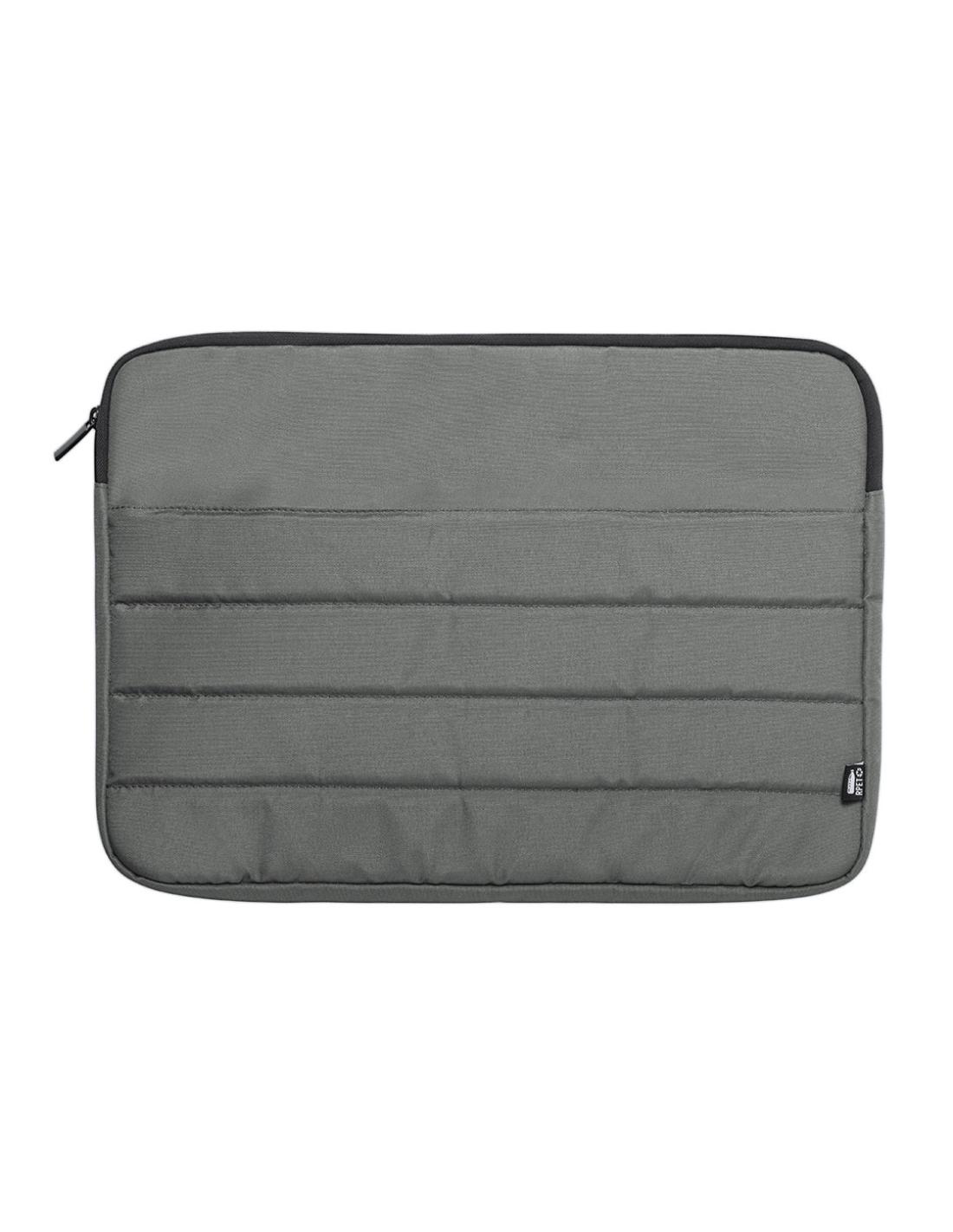 Funda para ordenador portátil de línea nature y acolchado total, para portátiles de hasta 15 pulgadas. Fabricada en resistente RPET 300D elaborado a partir de plástico reciclado, para así fomentar la reutilización de residuos plásticos y contribuir a la sostenibilidad del planeta. Bolsillo principal con cierre de cremallera y tirador metálico. Distintivo RPET en etiqueta.