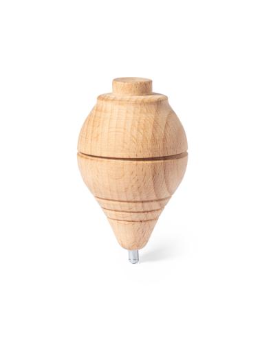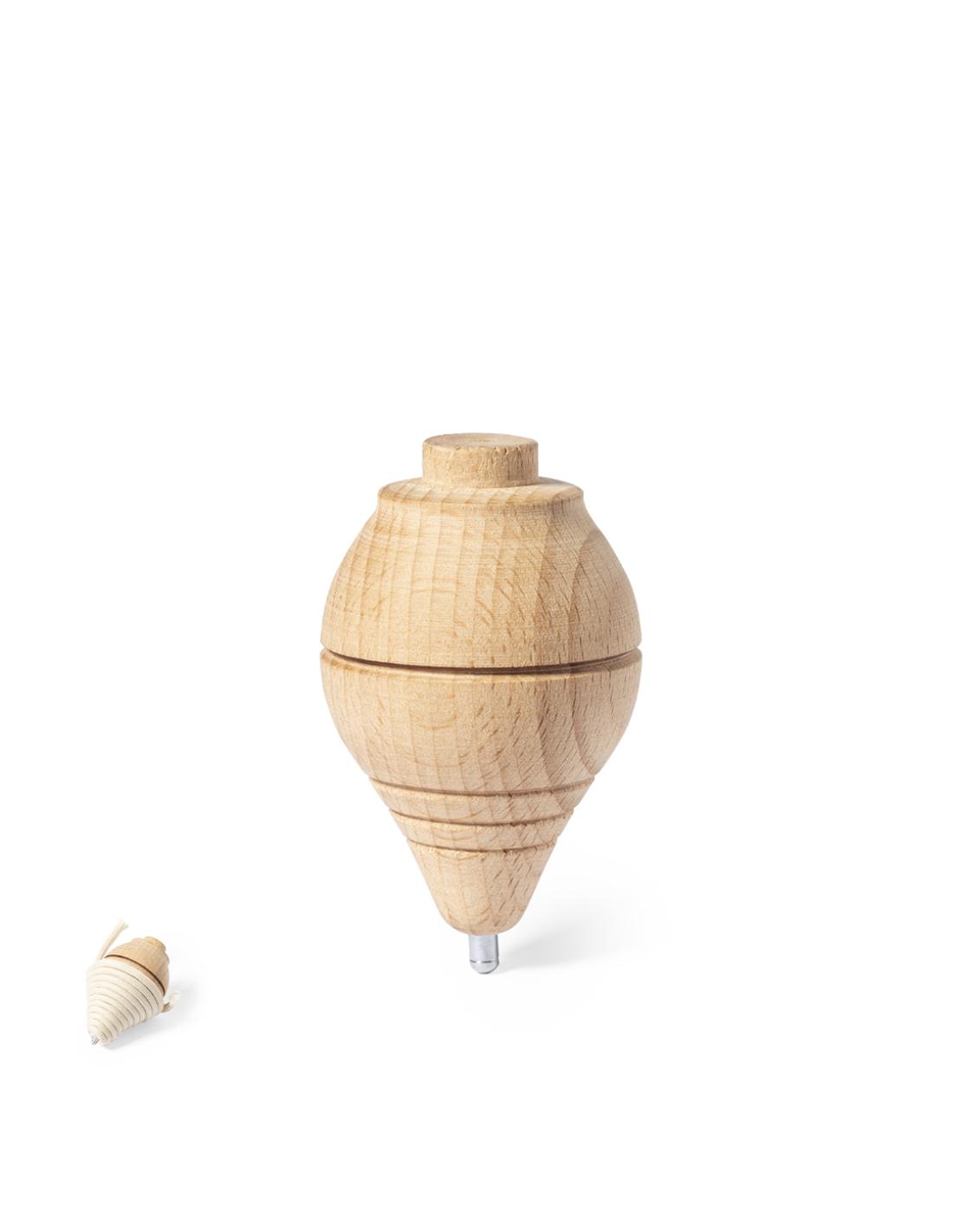 Peonza fabricada en resistente madera maciza, con cuerda en algodón de 120 cm de largo.