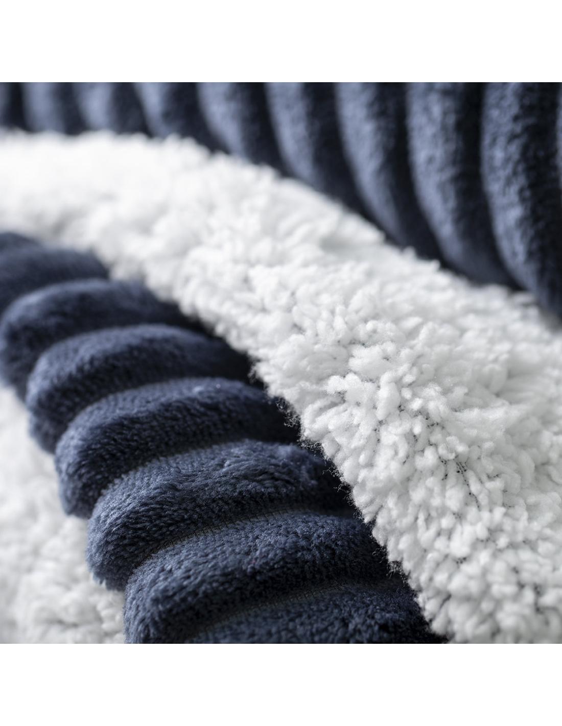 Suave y cálida manta en combinación de materiales coral fleece y sherpa de 440g/m2. En elegante diseño bicolor, tamaño 125x160cm. Presentación individual con cinta a juego y lámina de cartón reciclado para fácil impresión.
