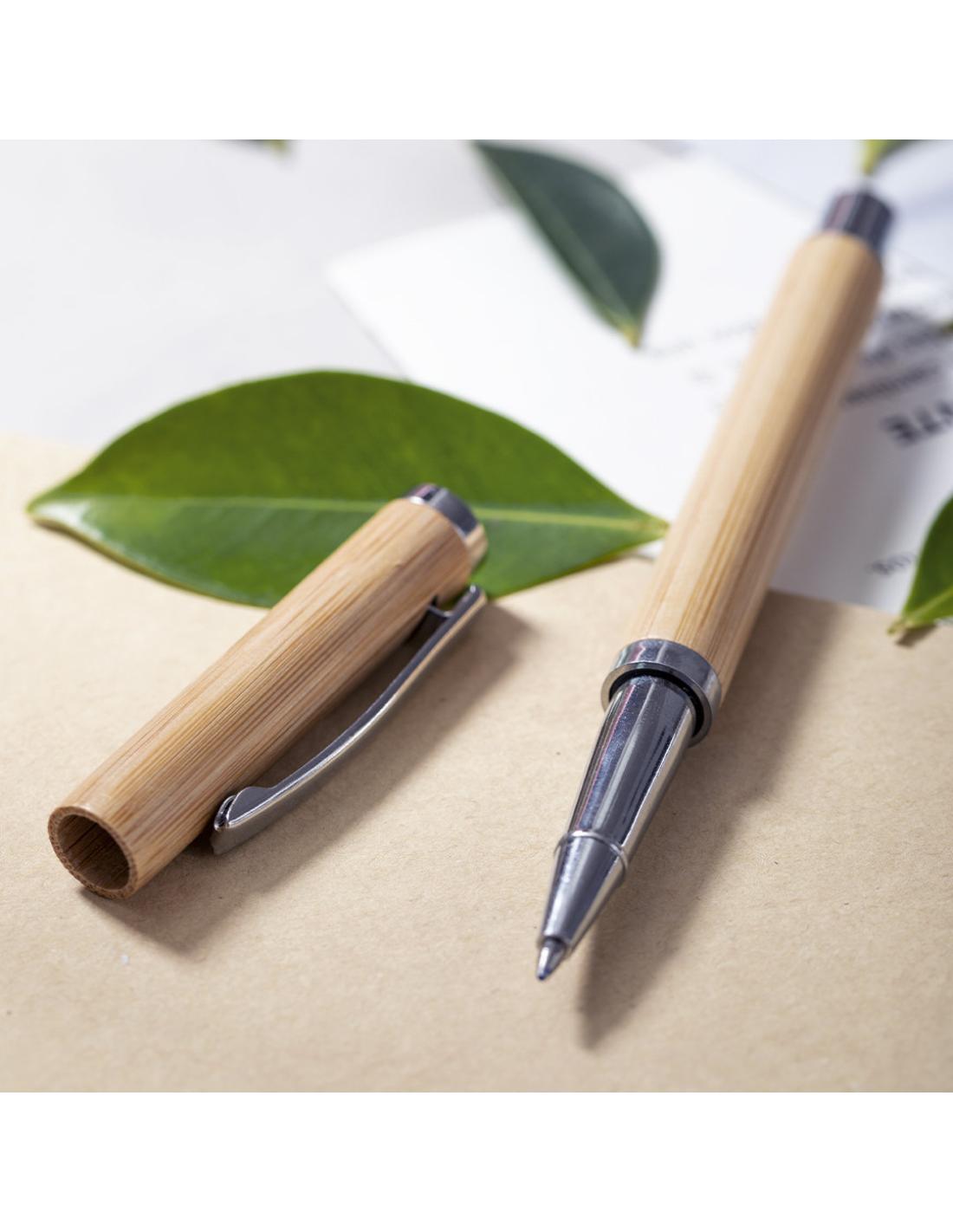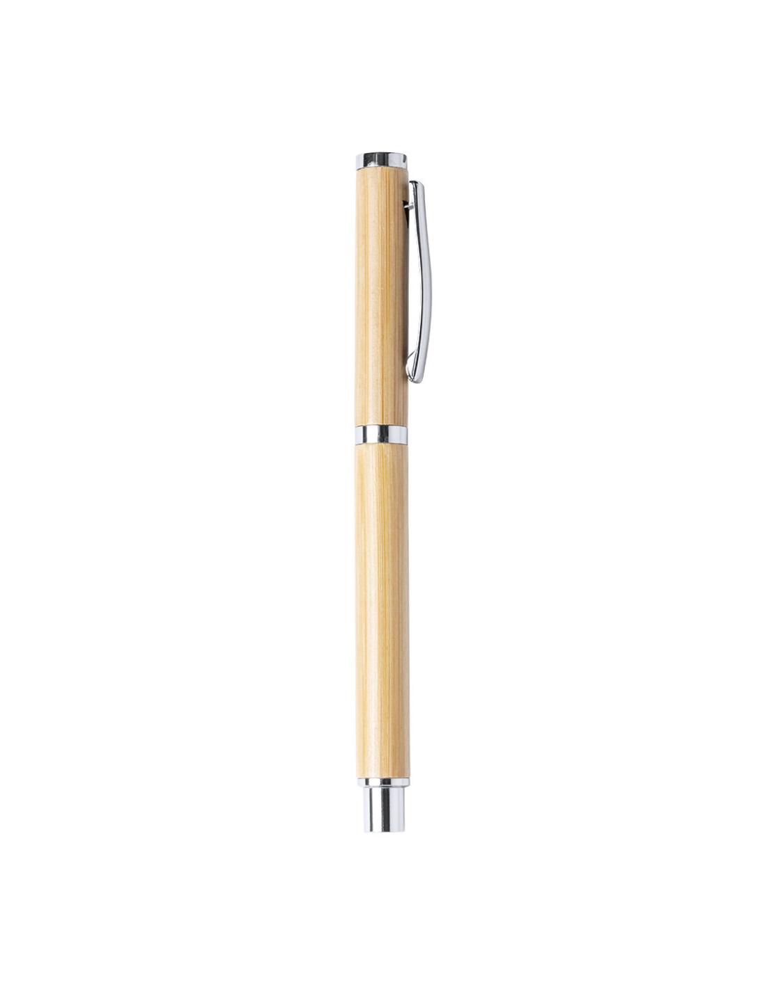 Roller de capucha de línea nature. Fabricado en bambú, con cuerpo de suave acabado y accesorios cromados. De cartucho jumbo, con tinta azul.