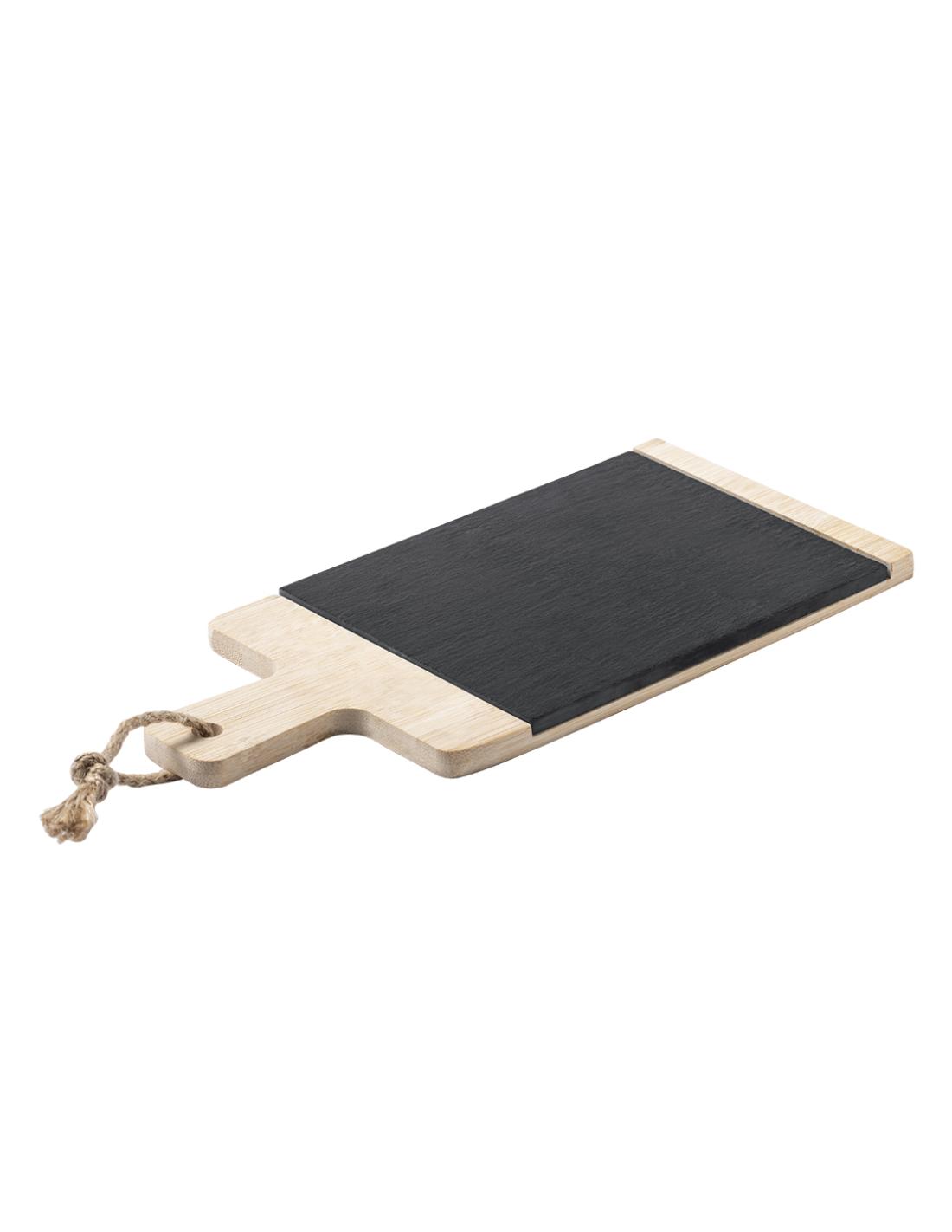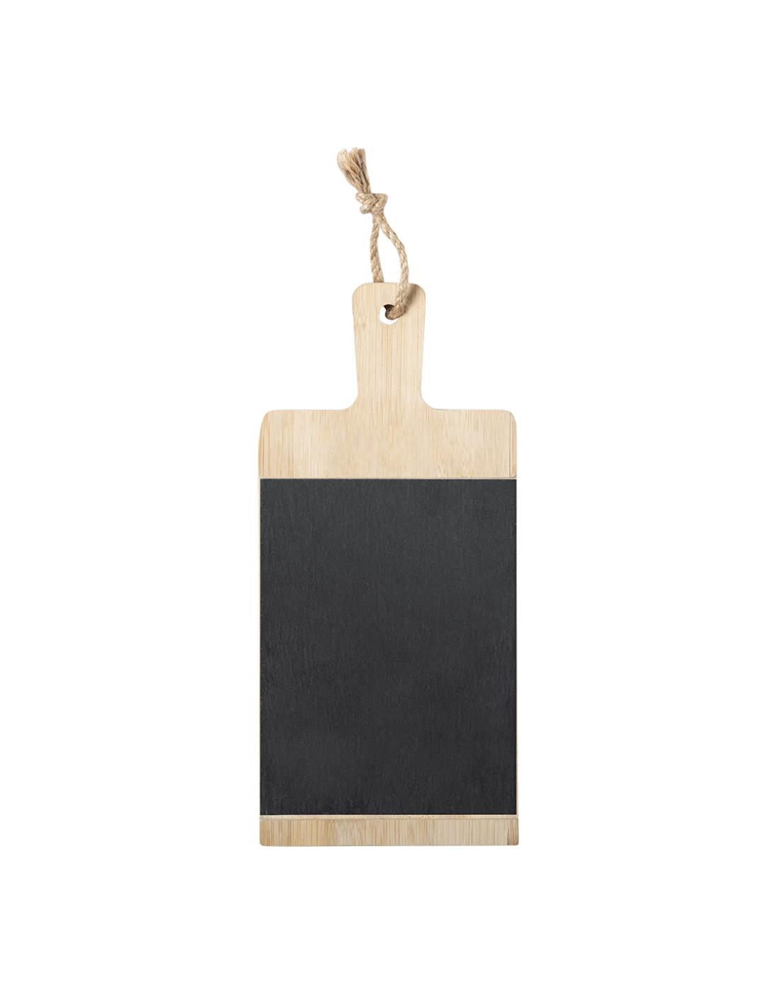 Tabla fabricada en combinación de materiales bambú y pizarra, de suave y resistente acabado pulido. Ideal para corte y presentación. Con asa para fácil manejo y cordón para colgar. Tabla de pizarra extraíble para fácil limpieza. Presentada en atractiva caja individual de diseño eco.