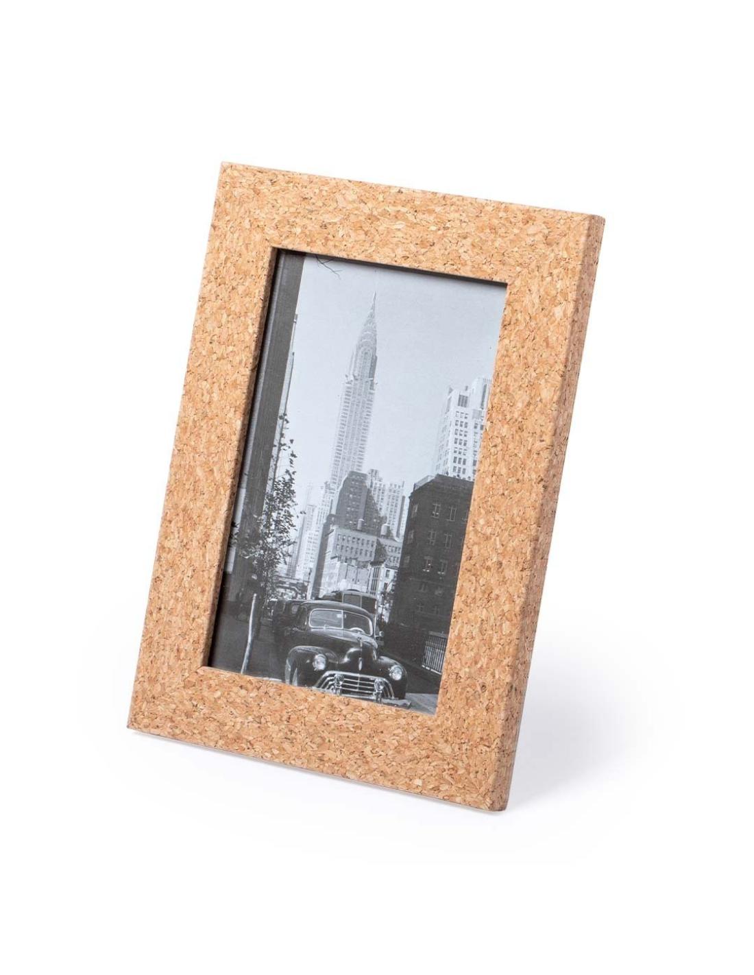 Portafotos de línea nature fabricado en corcho, con cristal de protección y soporte posterior para orientación en horizontal o en vertical. Diseñado para fotografías con tamaño de hasta 10x15 cm. Presentado en atractiva caja individual de diseño eco.