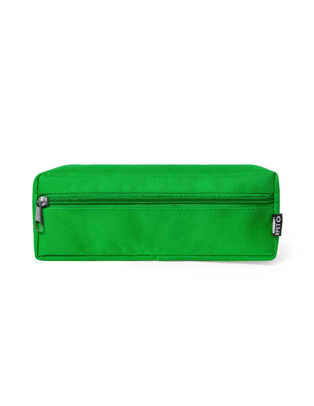 Estuche en resistente poliéster 600D RPET, elaborado a partir de plástico reciclado, para así fomentar la reutilización de residuos plásticos y ayudar a la sostenibilidad del planeta. Con cierre de cremallera en frontal y tirador metálico. Distintivo RPET en etiqueta.