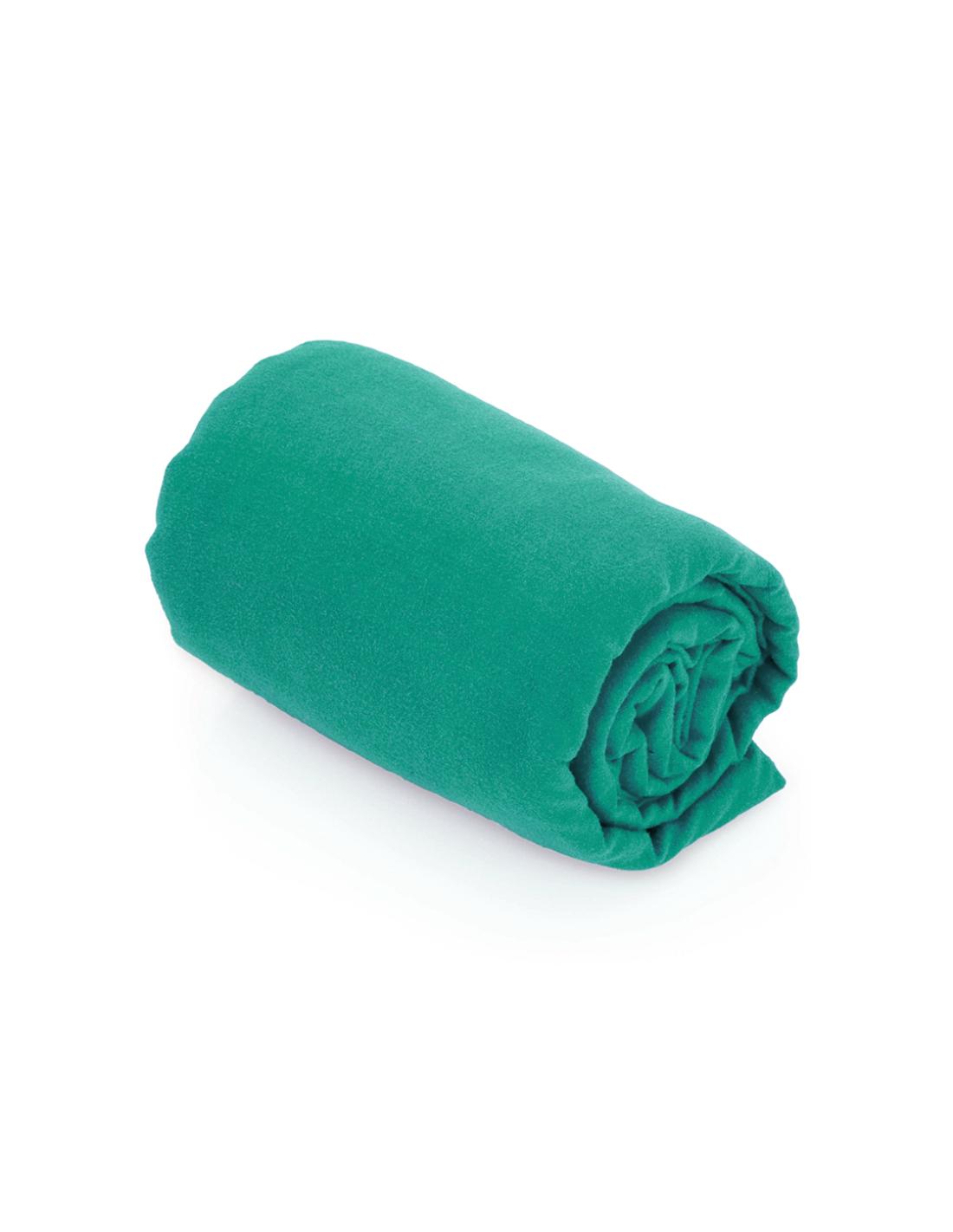 Toalla de 138x72cmcm en absorbente y suave microfibra de 200g/m2 en variados colores. Presentada en práctica bolsa de transporte de redecilla con accesorio de ajuste.