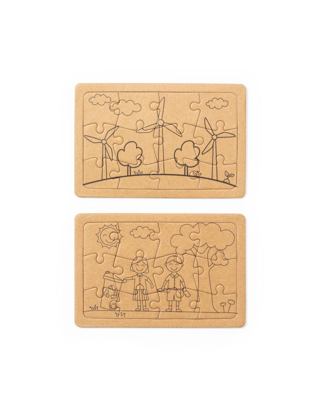 Set de puzzles de línea nature fabricados en cartón reciclado. Incluye 2 puzzles de 12 piezas cada uno. Set presentado en caja individual de diseño kraft.