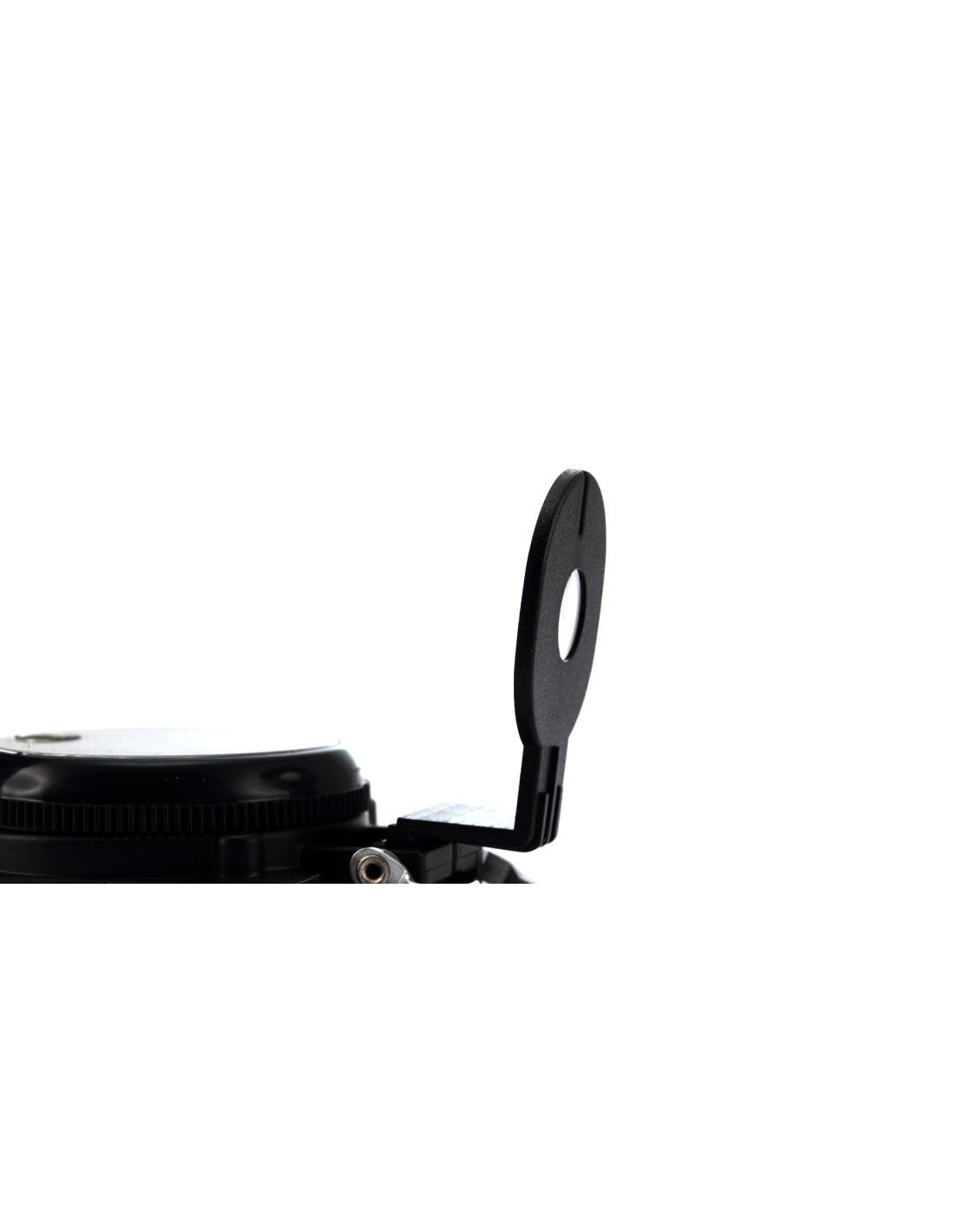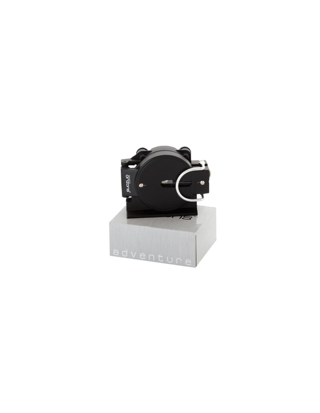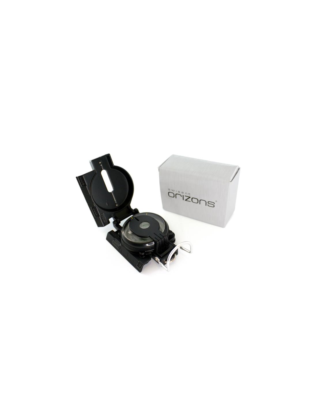 Brújula de Orizons de alta precisión con cuerpo en resistente aluminio, accesorio de fijación y presentada en atractiva caja de diseño con logotipo de la marca.